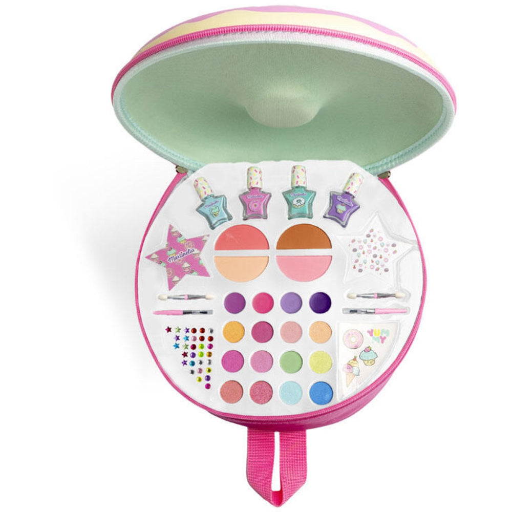 Introduce your little one to the delightful world of beauty with the Martinelia YUMMI Donut Dream Backpack! Perfectly designed for children, this super cool backpack comes packed with 12 eyeshadows, 4 nail polishes, 4 blushes, and 4 lip glosses. Additionally, it includes fun accessories like gem stickers, regular stickers, a nail file, and tattoos, making it safe and engaging. Aimed at boosting creativity and fine motor skills, each item is kid-friendly, easy to use, and simple to store. Ideal for youngsters eager to explore makeup and nail art securely and joyfully!