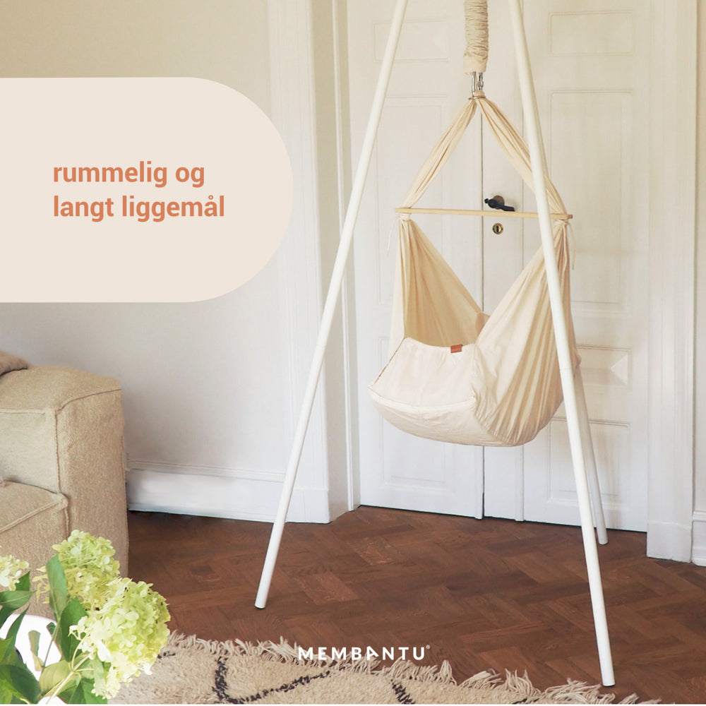 Introducing the MEMBANTU Grey Organic Baby Hammock Basic, a serene haven for your little one. Mimicking a parent's comforting embrace, this versatile sling cradle envelops your baby securely, making it an ideal choice for infants who prefer shorter naps. Easily adaptable with various accessories, it can be installed in numerous locations around your home, ensuring your baby always has a cozy spot to rest. The hammock’s ergonomic design not only supports comfort but also plays a part in sensory development, providing a gentle, calming environment for your child. Age: 0-10 months Materials: Hammock:Organic Cotton(GOTS)Mattress filling: Polyester Measurements: 90x32x100 cm Washing instructions: Hand wash, wash with similar colors, do not bleach, do not tumble dry, do not iron, dry flat