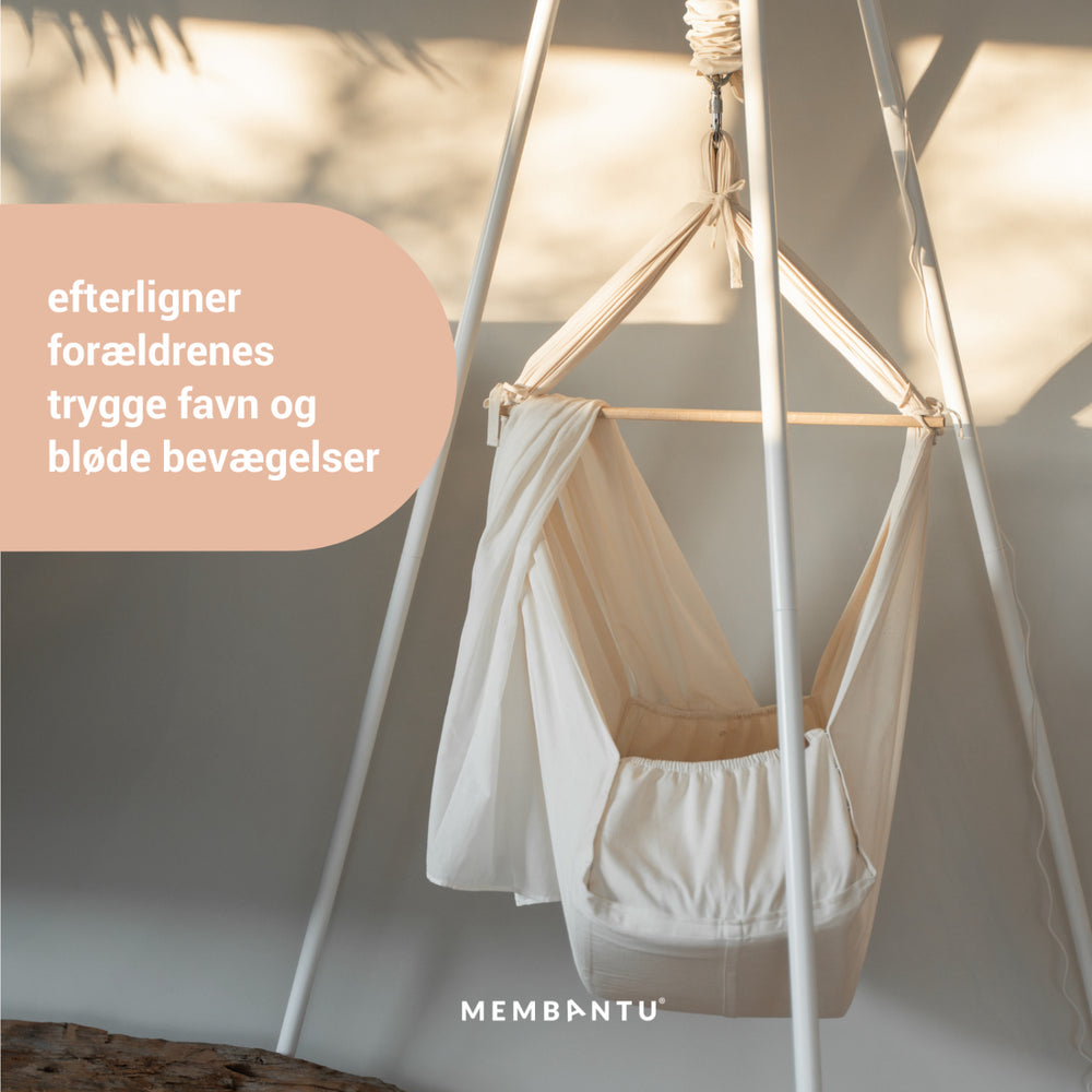 Discover the MEMBANTU Grey Organic Baby Hammock Premium, designed to mirror the soothing comfort of a parent's embrace. Perfectly shaped to fit your child's contours, this 'Sling Cradle' ensures safety and peace with each soft sway, encouraging more restful, shorter naps. Ideal for restless infants, it offers versatile placement options with the right accessories, ensuring ultimate comfort anywhere in your home. Embrace the blend of functionality, safety, and aesthetical design with this unique resting haven. Age: 0-10 months Materials: Hammock:Organic cotton. Mattress filling : Wool Measurements: 90x32x100 cm Washing instructions: Hand wash, wash with similar colors, do not bleach, do not tumble dry, do not iron, dry flat