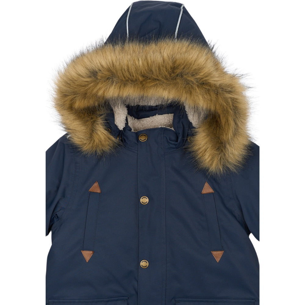 The jacket's technical strengths are impressive: it's windproof and boasts a cosy teddy lining with fluffy polyester filling for superior insulation. Waterproof capabilities are ensured by a 10,000 mm water column pressure rating with taped seams and zipper coverage for extra shielding. The parka's fabric is also breathable (5,000 g/m2/24hrs), ensuring your child stays comfortable and dry, no matter the activity level.