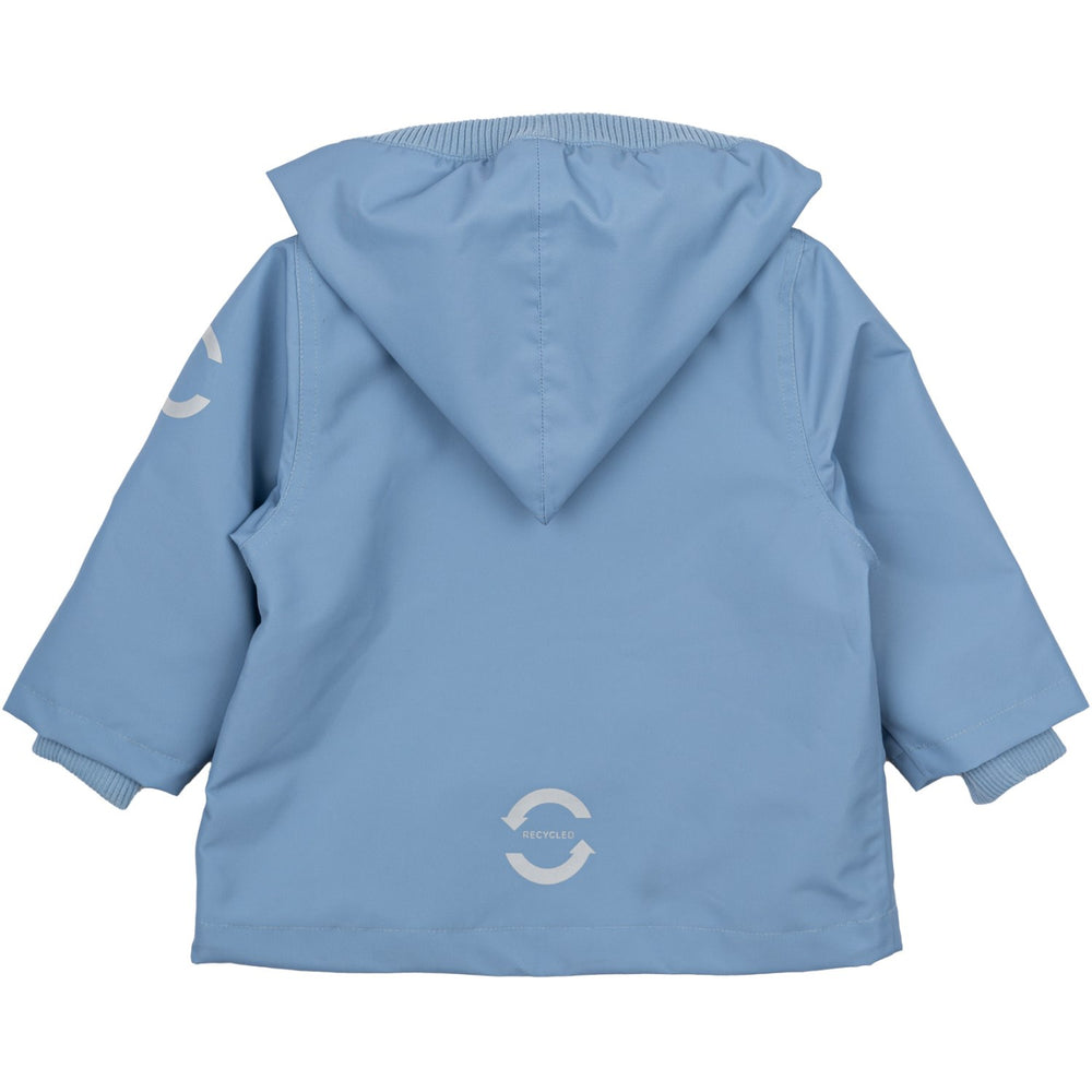 Dress your little one in the Mikk-Line Faded Denim Polyester Baby Jacket, perfect for the playground and beyond. Crafted from 100% recycled polyester, this jacket stands out with its solid color enhanced by a playfully printed lining. Ensuring durability and sustainable fashion, it features a flourine-free BIONIC-FINISH® ECO coating, making it both waterproof and windproof while maintaining great breathability. The design includes thoughtful details such as a detachable hood, reflective elements for safety, and dual YKK zippers for hassle-free dressing. Its lightweight and soft fabric promotes comfort and ease of movement, ideal for active children. Moreover, equipped with a name tag designed for multiple names, this jacket encourages passing it on, blending style with eco-consciousness.