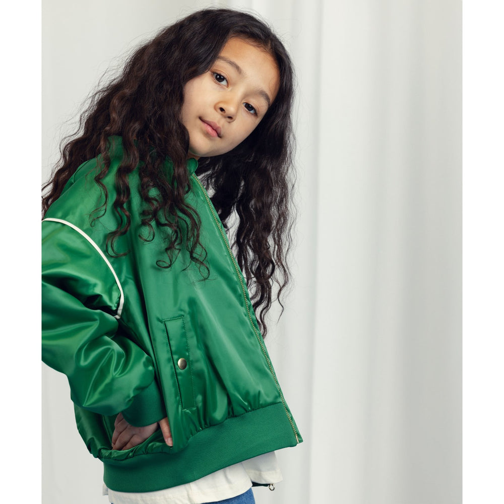 Mini Rodini Green Note Chenille Satin Baseball Jacket
