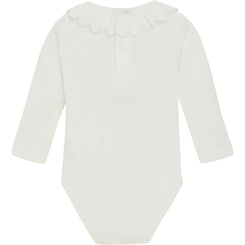 Delight in the cozy charm of the Minymo Marshmallow White Body Rib bodysuit, perfect for your little one! Crafted from soft, stretchy ribbed fabric, this bodysuit features a soothing white hue and a snug fit that guarantees comfort all day long. Its durable design and easy-care instructions ensure lasting use and simplicity in maintenance. Ideal for layering or wearing solo, it promises both style and practicality for any infant's wardrobe.
