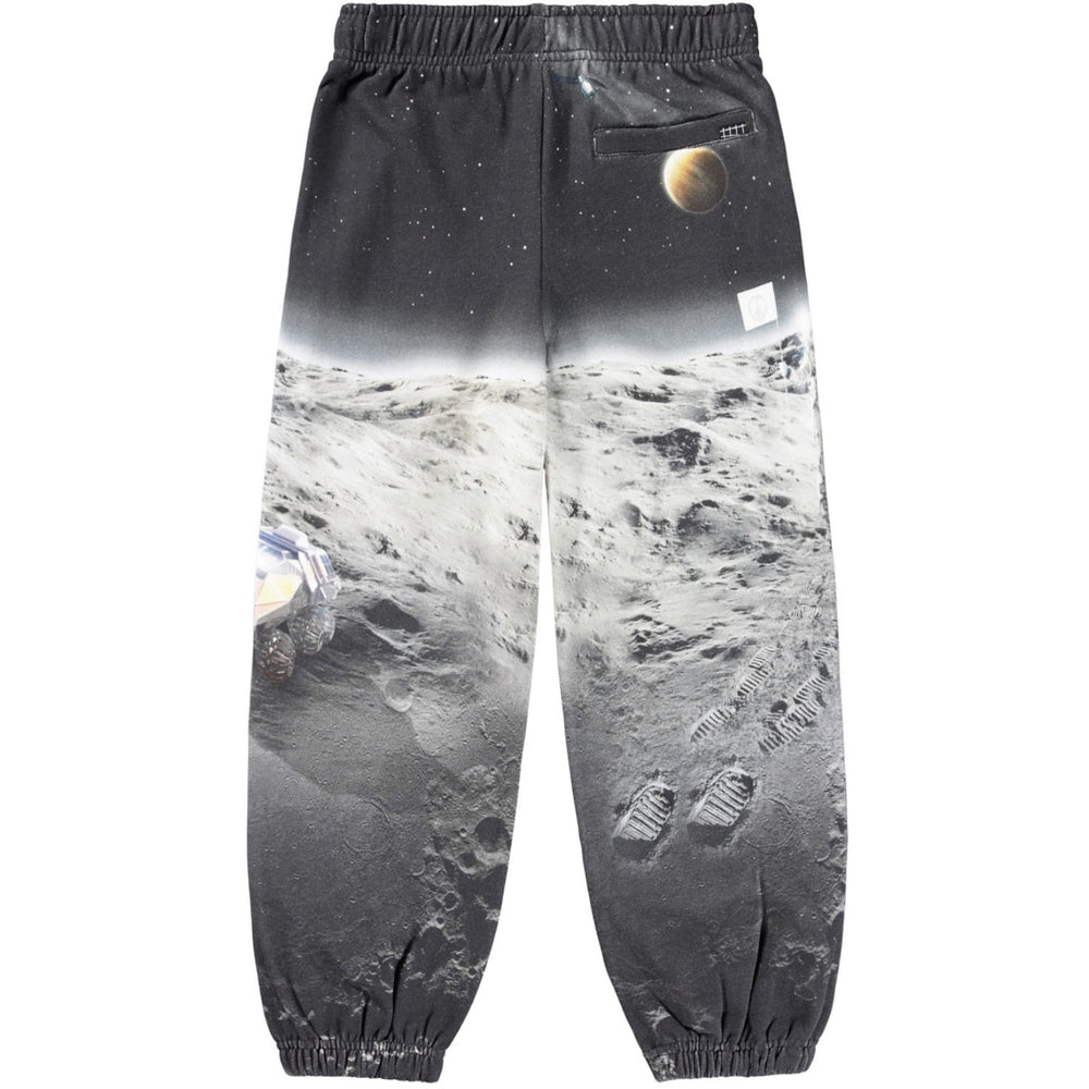 Explore the world with comfort in Molo's Moon Traveller Allen Soft Pants. Designed for the active child, these sweatpants feature a playful moon and stars pattern on a soft, breathable fabric. Perfect for various activities, they offer a snug fit that ensures freedom of movement while being easy to care for. Ideal for everyday adventures!