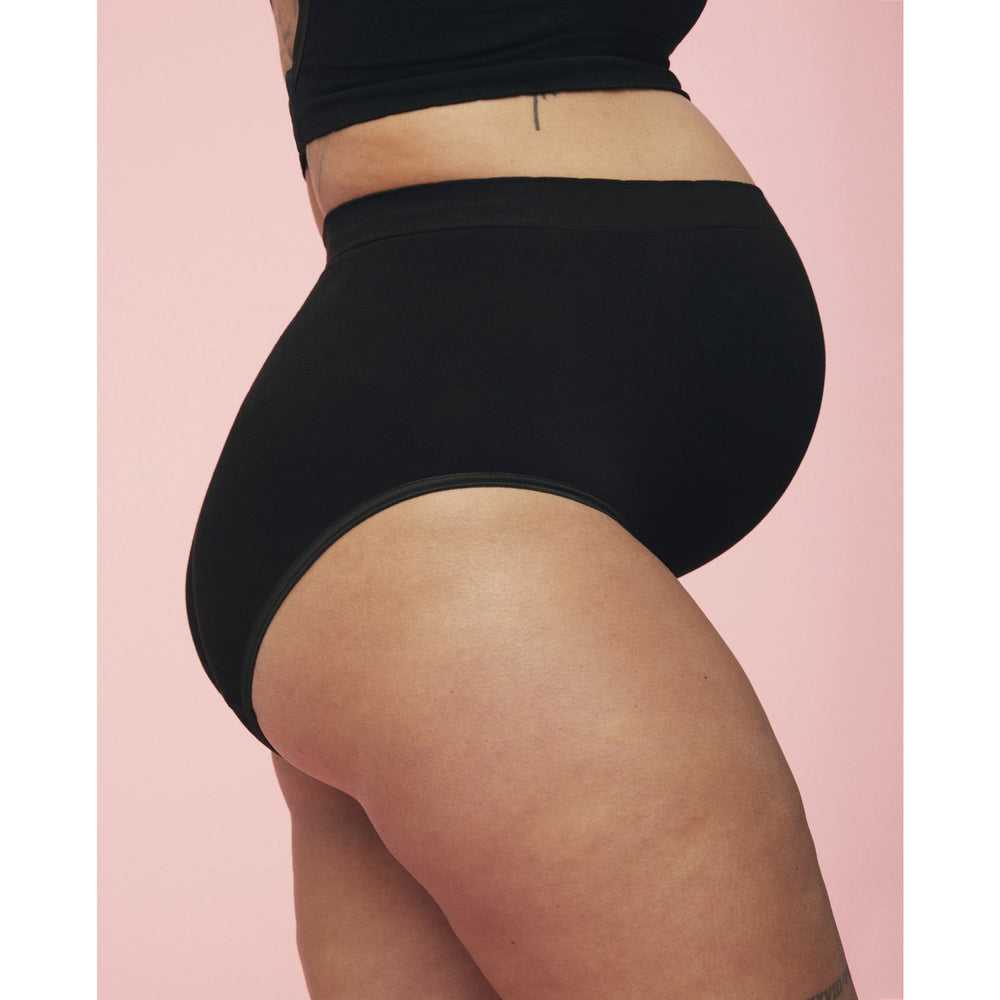 Discover comfort during your special journey with our Momkind Sort Graviditetstrusse. Designed in Denmark and crafted in Slovakia, these pregnancy panties feature woven support panels that effectively alleviate stress on your stomach and lower back as your body evolves. The wide, soft gusset and elastic leg edges enhance comfort without chafing, ensuring a snug fit that moves with you. Approved by pregnant women, these panties promise optimum ease and skin-friendly wear throughout your pregnancy.