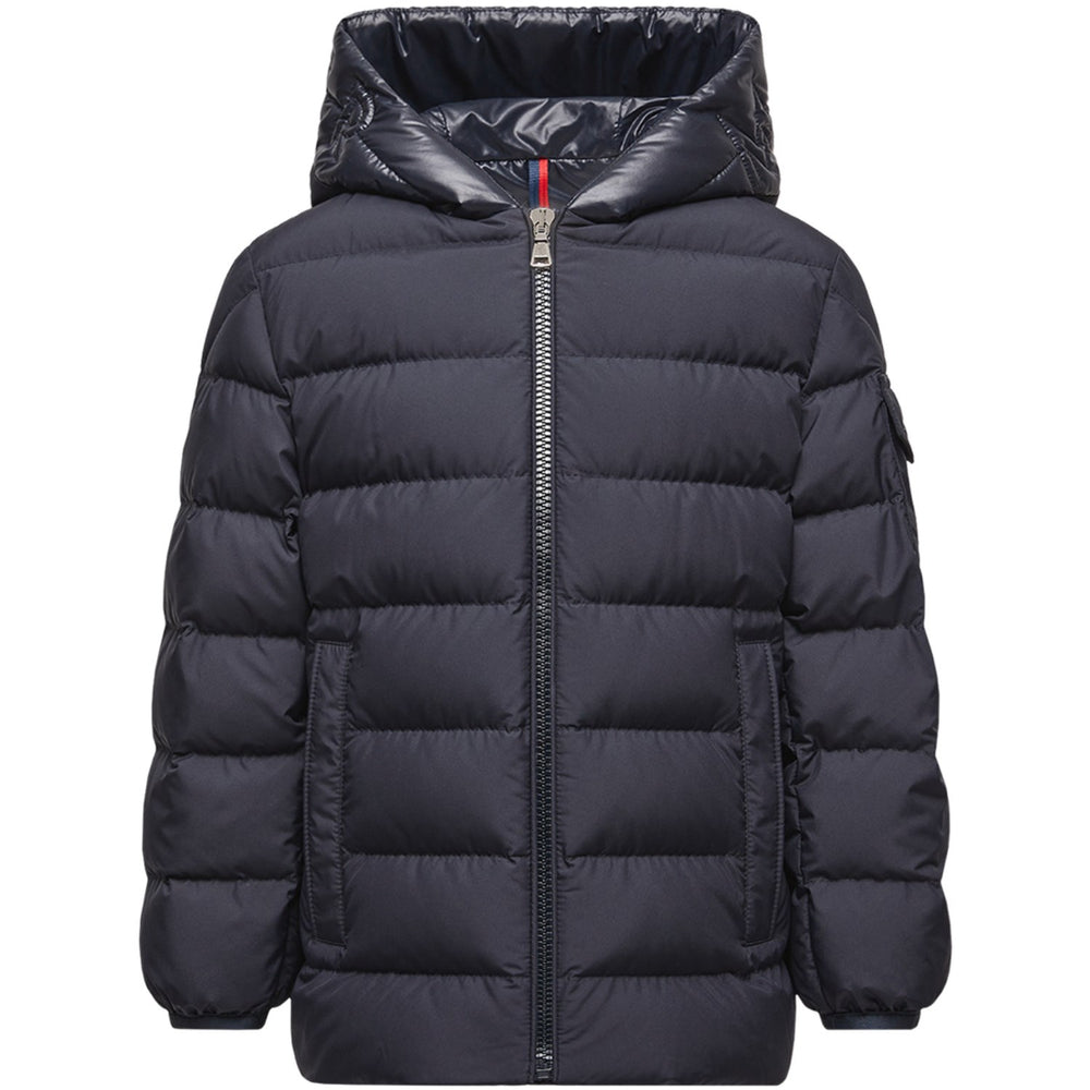 Discover cozy warmth and stylish flair with the Moncler Navy Najan Short Parka Jacket, ideal for those transitional seasons. Crafted from premium materials, this jacket features a unique quilted logo on the hood, adding a playful twist to traditional outerwear. The puffer design not only looks great but also keeps your child comfortable and mobile. Easy to care for and durable, it's a practical addition to any child's wardrobe, ensuring they stay warm and fashionable in cooler weather. Materials: Outer: 100% Polyester - 1 Material: 100% Polyester, Lining: 100% Polyester - Details Padding: 100% Polyester, Down 90% + Feather 10% Washing instructions: Remember to follow washing and user instructions Crafted from polyester Polyester lining Down-filled Hood with a quilted logo Zipper closure Pockets with snap button closure Elastic cuffs and hem
