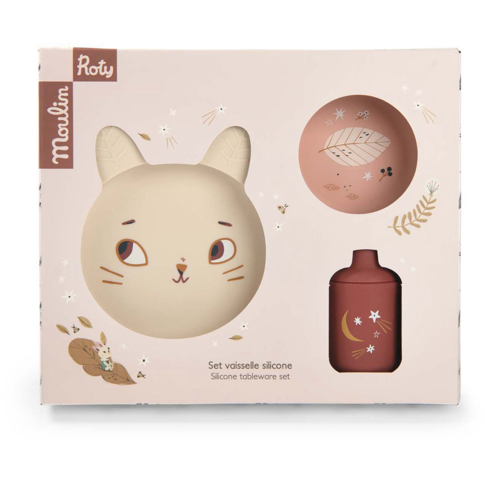 Delight your little one at mealtime with the Moulin Roty My First Dining Set from the enchanting Après La Pluie series. Crafted with durable silicone, this set is designed for easy handling with features like a spout cup with dual handles, ideal for small hands. The set includes a 21 cm plate, a bowl, and a cup, all adorned with adorable illustrations that capture the imagination. Microwave and dishwasher safe, the set offers hassle-free maintenance and helps streamline mealtime preparations. Suitable for children aged 1-3 years, it offers a perfect blend of practicality, safety, and fun, making every meal enjoyable and less messy. This set not only facilitates feeding independence but also helps in the development of motor skills as they engage with the appealing visual themes. Age: 1-3 years Materials: Vinyl, Silicone Dioxide, Polyurethane, Cyclohexanone Measurements: Product height (cm): 13.5, Product length (cm): 17.5, Product width (cm): 21
