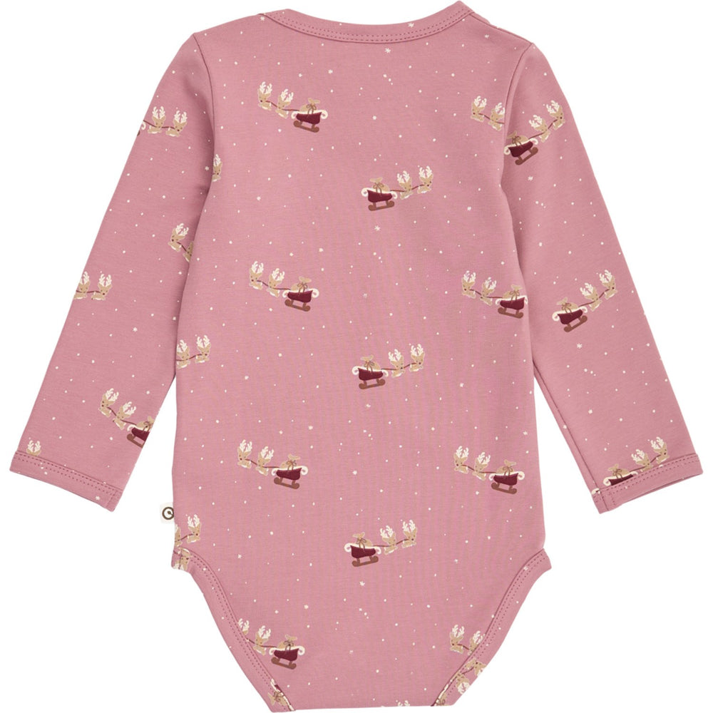 Discover the charm of the festive season with our Müsli Nostalgia Rose/Cabernet/Balsam Cream Christmas Long Sleeve Bodysuit. Perfect for your little one, this delightful bodysuit features a nostalgic Christmas print complete with reindeer and Santa's sleigh. Crafted from 95% organic cotton and 5% elastane, this piece ensures maximum comfort and flexibility for all-day wear. Its soft, stretchy single jersey fabric is GOTS Organic Certified, proving it meets the highest standards of organic and environmental care, down to the dyeing, knitting, and sewing processes. The bodysuit features practical press buttons at the neck and bottom for easy dressing. Embrace both durability and adorability this Christmas with a bodysuit that stands out in color and design while promoting ethical manufacturing practices.