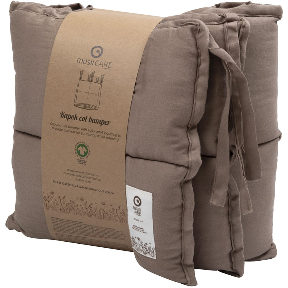 Introducing the Müsli Walnut Kapok Bumper Long, a must-have for ensuring the safety and comfort of your little one while they rest. Crafted from soft, satin-woven cotton with a pure kapok filling, this premium cot bumper is meticulously designed to fit most standard cots. The dimensions are a generous 200 x 28 cm, providing ample coverage and protection.