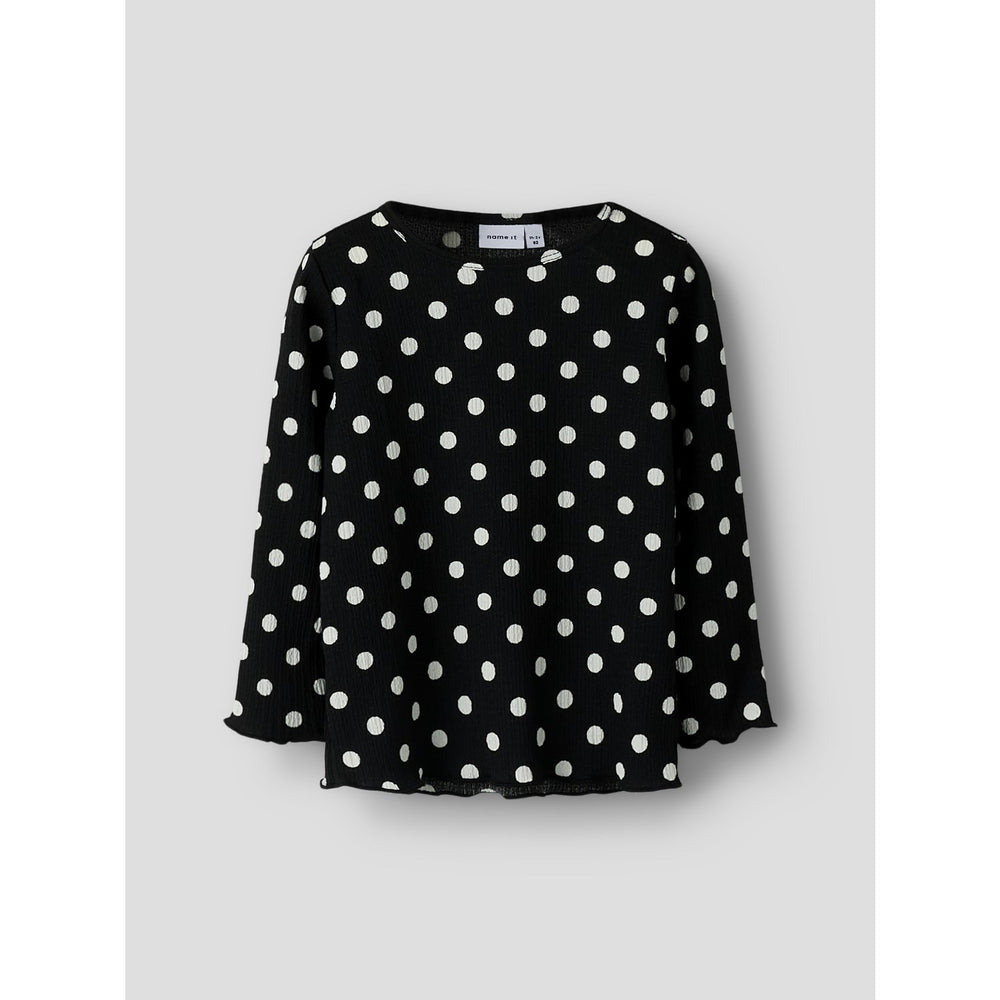 Introduce playful charm into your little one's collection with the Name It Black Nmfsallie Ls Top. Designed for both comfort and style, this premium jersey T-shirt features a soft, stretchable texture ensuring ease of movement. Adorned with a charming all-over print, it has a rounded neckline and long sleeves for a snug, regular fit. Ideal for daily wear or festive occasions, this versatile top is easy to care for, making it a delightful addition to any child's outfit essentials. Fit: Regular Materials: 98% Polyester, 2% Elastane