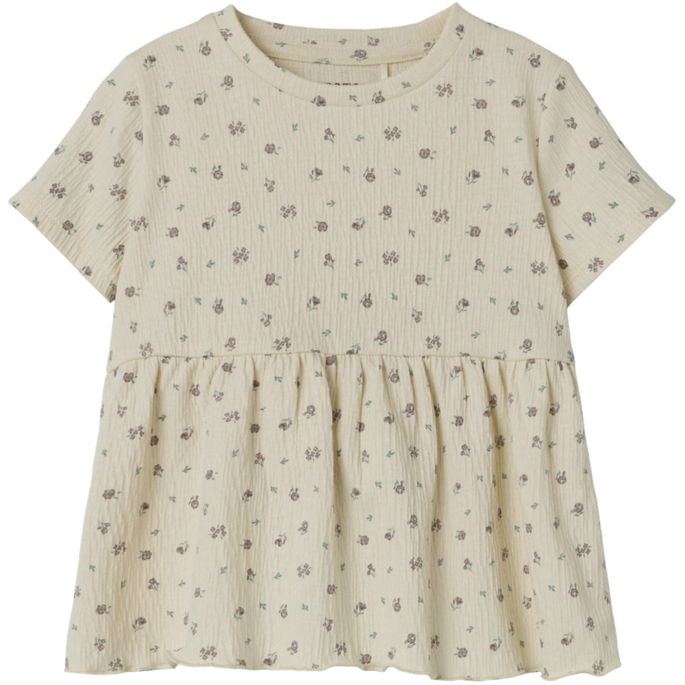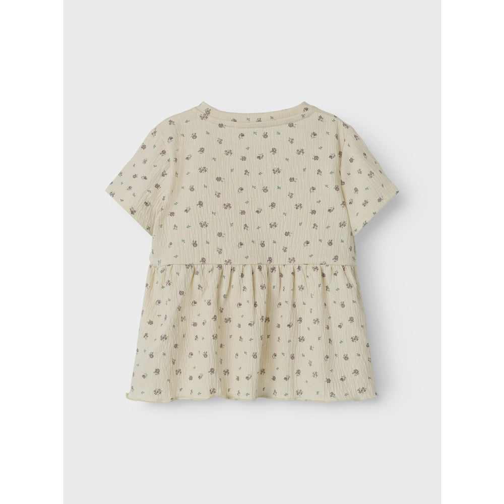 Brighten up your little one's clothing collection with the Name It Bleached Sand Jannis Top. Crafted from soft, stretchy jersey, this top offers comfort and flexibility, perfect for all-day wear. Featuring a charming, all-over print, the top comes with a classic round neck and short sleeves. The standard fit ensures easy wearability for children on the move. Suitable for both daily wear and special occasions, this piece combines durability with adorable style, making it a versatile addition to any child's wardrobe.