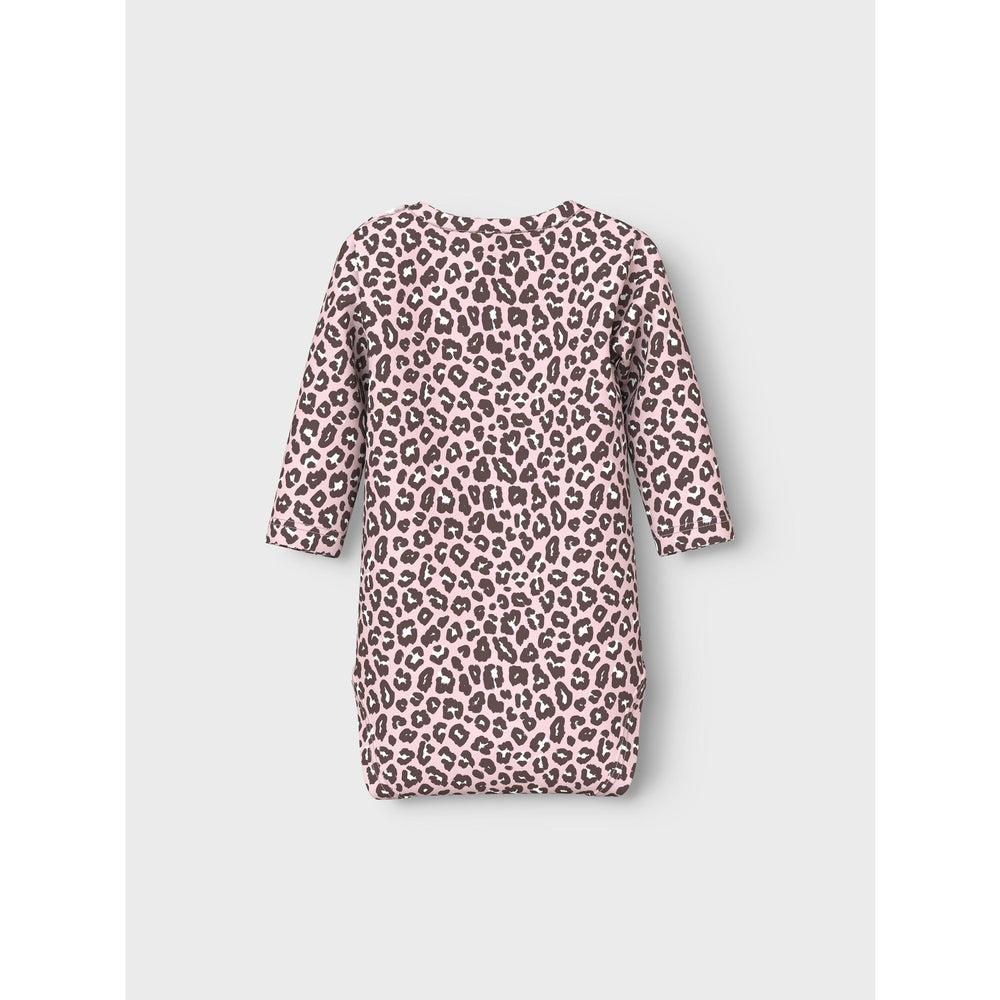 Introducing the Name It Burnished Lilac Nbfleoana Ls Body, the perfect addition to your child's wardrobe for year-round comfort and style. Crafted from soft, elastic rib knit with a vertical striped pattern, this bodysuit features a cozy round neck and long sleeves for protection in any season. It's designed with easy-to-use press stud fastenings for quick changes and a charming all-over print that adds a splash of fun. Notably, this garment is built with safety in mind, but do ensure it is kept away from fire. Ideal for daily wear, this bodysuit combines functionality with adorable style, making it a perfect blend of form and practicality for your little one.