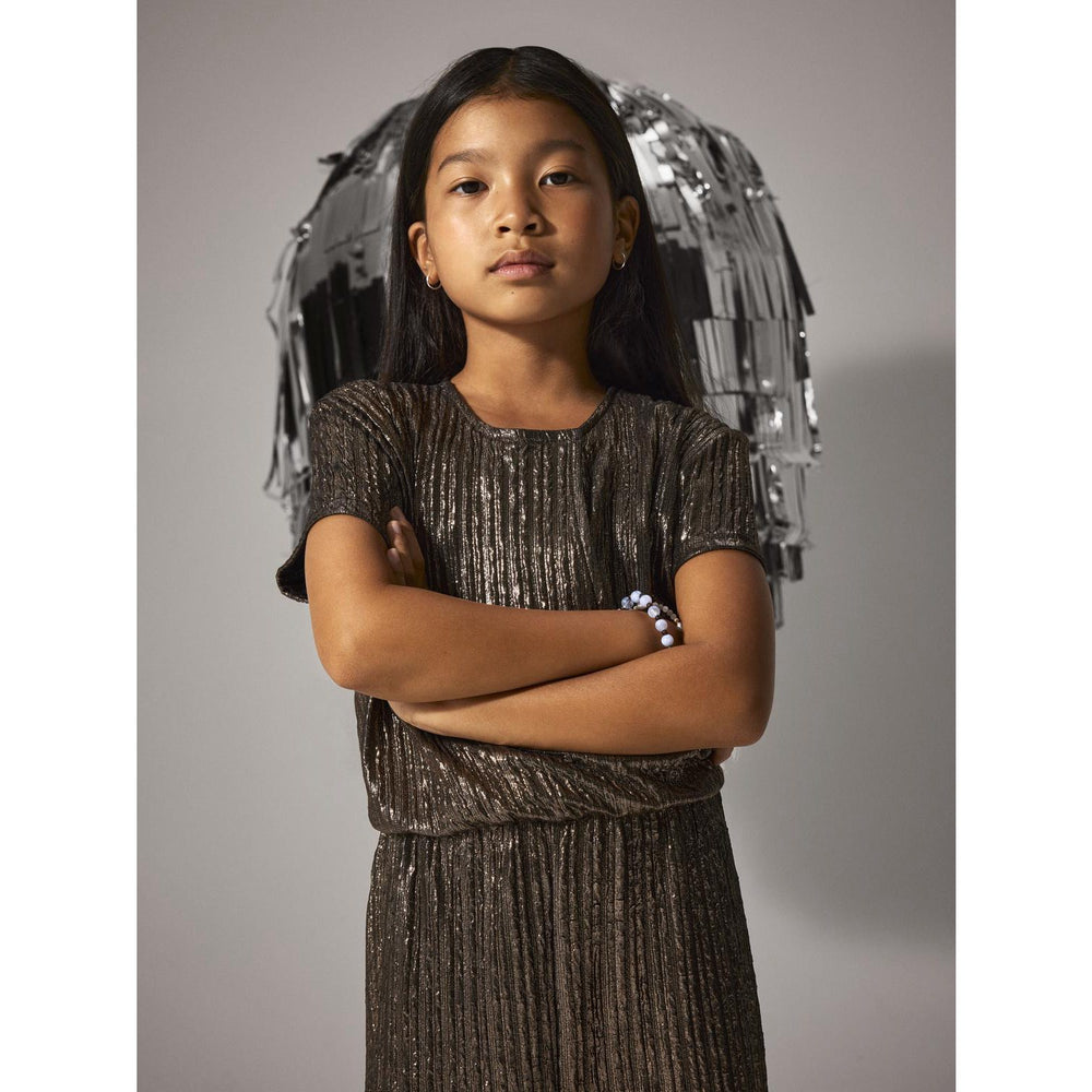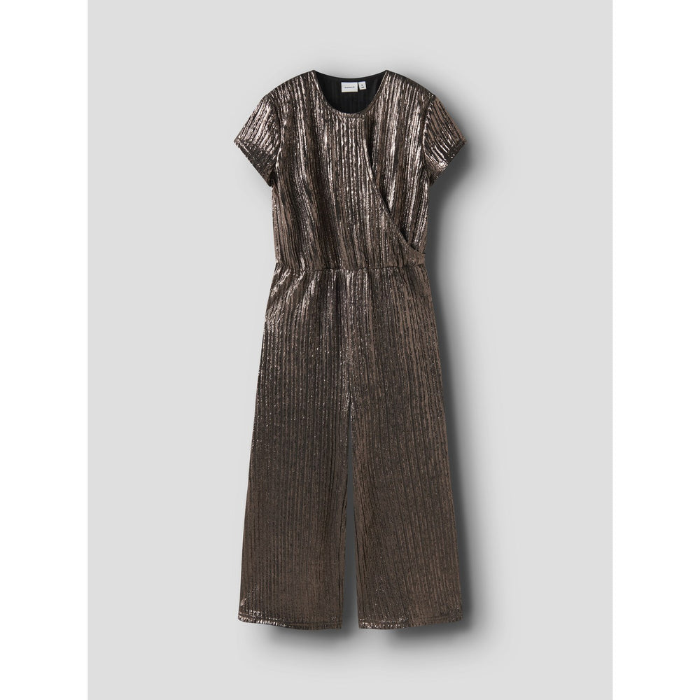 Introducing the captivating Name It Copper Nkfreneing Jumpsuit, perfect for your little one's wardrobe. Crafted from woven fabric with a classy criss-cross pattern and light texture, this jumpsuit combines style and comfort. It features a glittering print, adding a cool, sparkling touch. The piece is designed for ease of wear with its button fastening, ensuring a snug fit. Ideal for both special occasions and everyday fun, it’s an essential outfit that promises both durability and charm. Closure: Button Materials: 95% Polyester - Recycled, 5% Elastane Materials and care: Wash with similar colors. Wash and iron inside out. Washing bag recommended Washing instructions: Maximum Washing Temperature 40°C - Gentle Process Extra: The main material in this product contains a minimum of 50% recycled polyester. Recycled polyester saves natural resources and reduces the amount of waste.