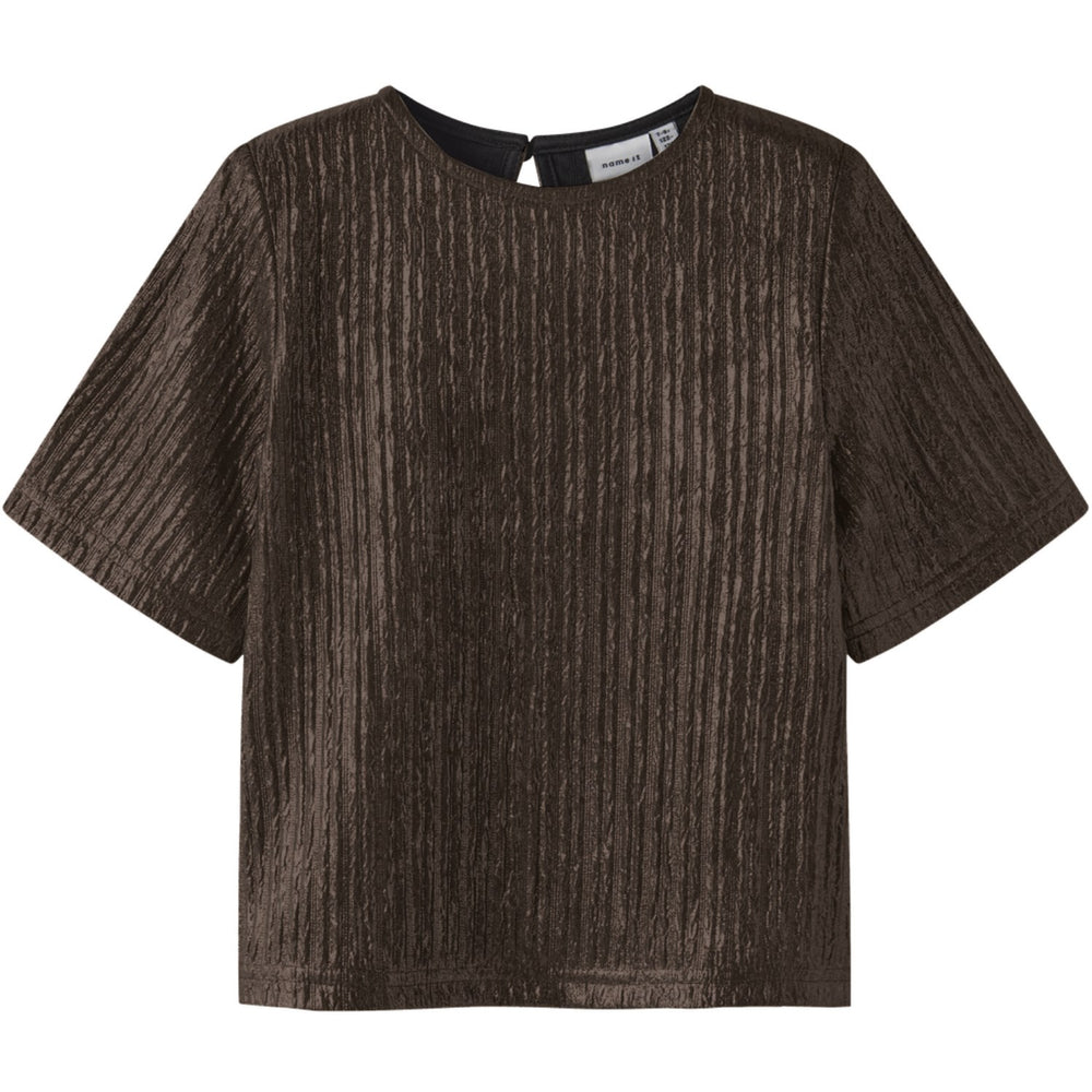 Introduce your little one to the charming world of fashion with the Name It Copper Nkfreneing Ss Top. Crafted from woven fabric with a criss-cross pattern, this top features a soft, lightly textured surface for a refined appearance. The top comes in a regular fit with a round neck and short sleeves, ensuring comfort and freedom of movement for all-day wear. A delightful sprinkle of glitter print adds a sparkling, eye-catching effect, making it a superb choice for both daily play and those more special events. The practical button-and-loop fastening makes dressing hassle-free. Ideal for any young wardrobe, this top blends style, comfort, and a touch of glamour. Closure: Button and Loop Fit: Regular Materials: 95% Polyester - Recycled, 5% Elastane Materials and care: Wash with similar colors. Wash and iron inside out. Max. shrinkage 5% Washing instructions: Maximum Washing Temperature 40°C - Gentle Process Extra: The main material in this product contains a minimum of 50% recycled polyester. Recycled polyester saves natural resources and reduces the amount of waste.