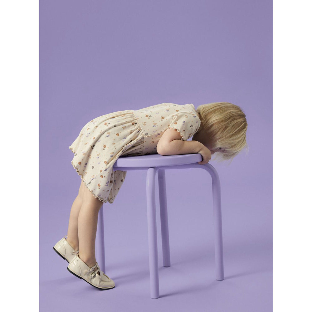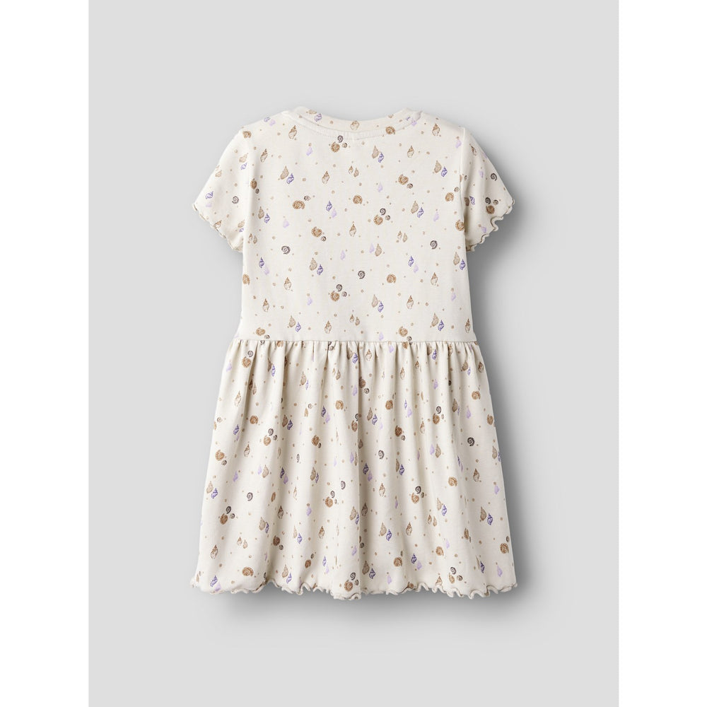Brighten up your little one's collection with the Name It Sandshell Nmfhiline Ss Dress, ideal for any season and setting. Crafted from rib knit material, it offers a comfortable fit and excellent elasticity, adorned with a vertical striped pattern for a classic style. The dress features a round neck, short sleeves, and a glittery print throughout, enhancing its cool vibe. Designed for regular fit and easy care, this dress combines functionality with sparkling charm, perfect for daily wear or special occasions.