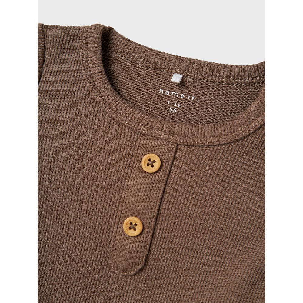 Discover the delight of dressing your little one in the Name It Walnut Jular Bodysuit, an everyday essential that marries comfort with style. Crafted from lightweight, stretchy jersey, this bodysuit features a soft texture both inside and out, ensuring your child enjoys utmost comfort and freedom of movement. The charming design includes a round neck, short sleeves, and is enhanced with adorable button details and practical press stud fastenings for easy dressing. Available in appealing colors and patterns, it is perfect for year-round use. Notice: Keep away from fire to ensure safety.