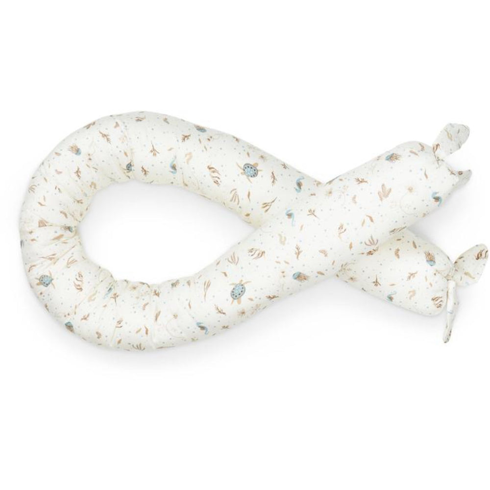 Discover the enchanting Cam Cam Copenhagen Sea Garden Bed Bumper, designed to transform your child's sleeping space into a secure and snug sanctuary. This versatile bed hose, adorned with the delightful Sea Garden print, not only enhances comfort around the bed frame but also doubles as an adorable cuddle companion, perfect for easing your little one into independent sleeping. Ideal for both baby and junior beds, its charming design and durability make it a splendid addition to any nursery, promising years of utility and style. An excellent gift choice, this bumper combines elegance with practicality, ensuring a safe, organized, cozy, and stimulating environment for your child. Materials: Outer: 100% organic cotton, filling: 100% polyester Measurements: 13 x 15 x 180 cm Washing instructions: 30°C machine wash. Do not tumble dry. Use mild detergent. Certifications: OCS