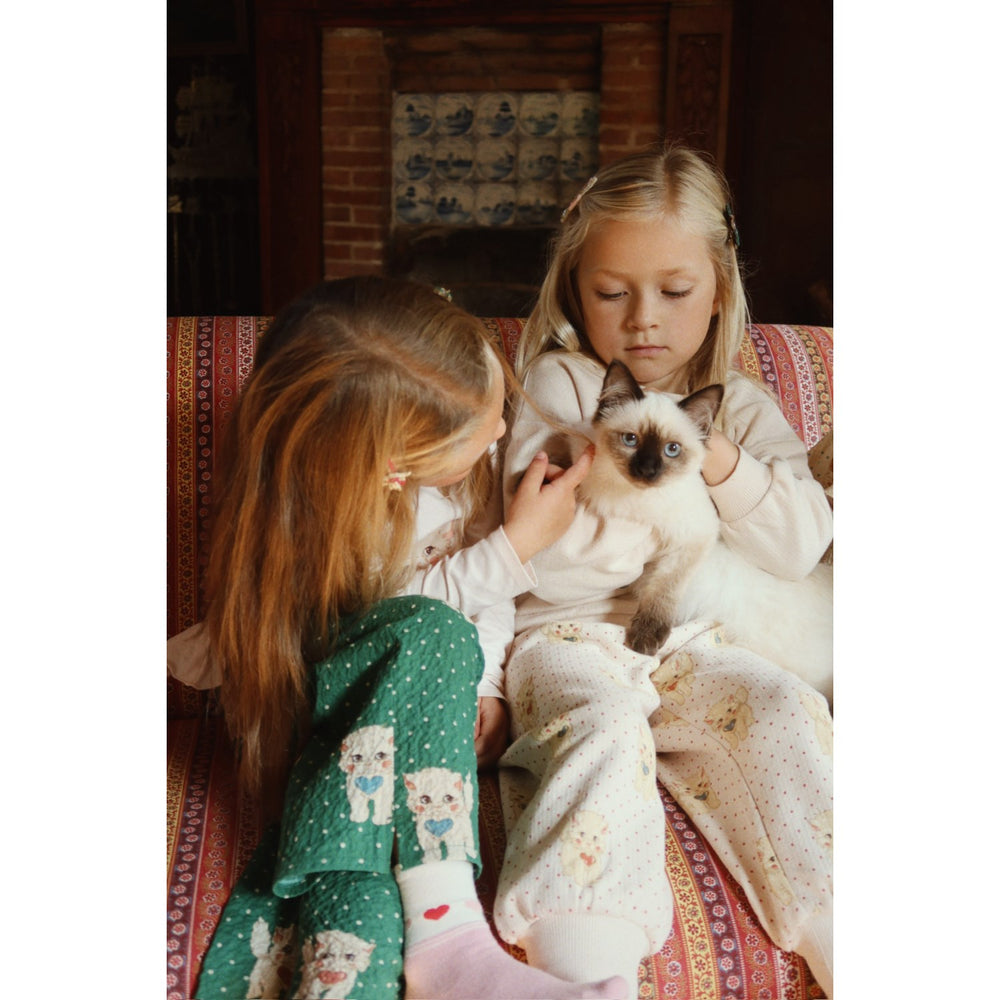 Discover the charm of Konges Sløjd's Dot Miao Verde Elin Pants, which blend eco-friendly fashion with comfort for your little ones. Crafted from GOTS-certified organic cotton with a unique seersucker texture, these pants feature a relaxed, loose fit ideal for active children. The elastic waistband ensures a snug fit, while the decorative slit detailing at the bottom adds a stylish touch. Available in a soothing green hue, these pants promise both durability and easy care, perfect for daily adventures. Materials: 100% Organic Cotton