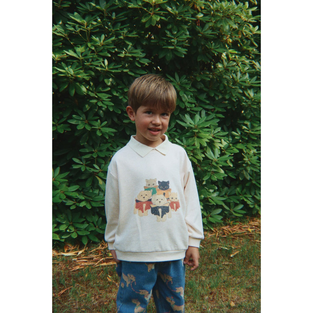 Dress your little one in the timeless charm of the Konges Sløjd Family Photo Spotty LS Polo, masterfully crafted from GOTS-certified organic cotton for unmatched comfort and sustainability. Featuring a classic polo design with a modern twist, this piece comes in a relaxed sweatshirt silhouette with dropped shoulders and ribbed hems for easy wearability. The soft fabric ensures gentle touch on delicate skin, making it perfect for everyday fun and stylish family gatherings. Embrace both style and eco-conscious apparel with this delightful addition to your child's wardrobe.