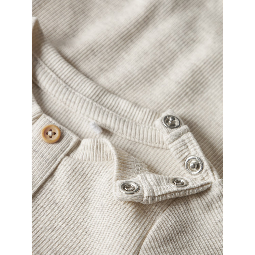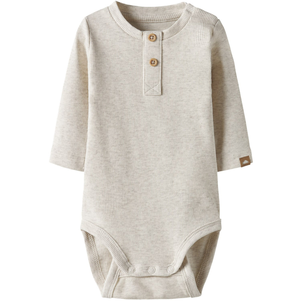 Introducing the Name It Peyote Melange Nbmtopper Ls Body, an essential addition to any child's closet. Designed with cozy rib knit, this bodysuit features vertical stripes that enhance its classic charm, while the fabric's excellent elasticity ensures comfort and freedom of movement. Available in soft melange, this piece comes with long sleeves, an easy-access O-neck, and convenient button and press stud fastenings in the crotch for quick changes. Ideal for year-round use, it blends style, comfort, and practicality, keeping your little one snug and stylish every day. Please note, keep away from fire.
