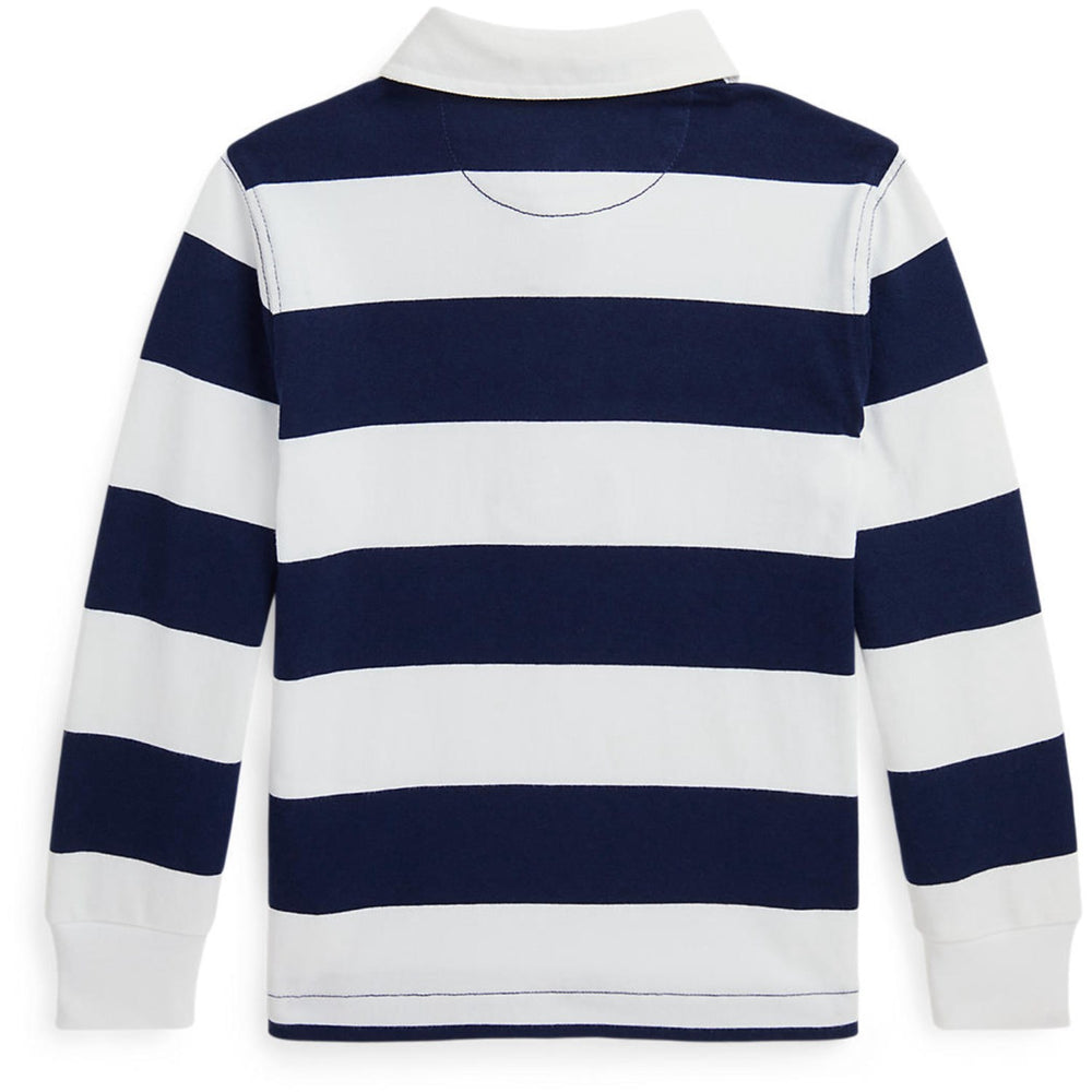 Introducing the Polo Ralph Lauren Rugby Polo T-Shirt in a crisp white and cruise navy. Crafted from premium materials, this polo combines timeless style with exceptional comfort. The classic design features bold stripes, adding a playful touch to any child's wardrobe. Its lightweight fabric ensures ease of movement and breathability, making it perfect for both active and casual occasions. Easy to care for, this shirt keeps its shape and color wash after wash. Ideal for everyday wear, it offers both durability and style. Materials: 100% Cotton