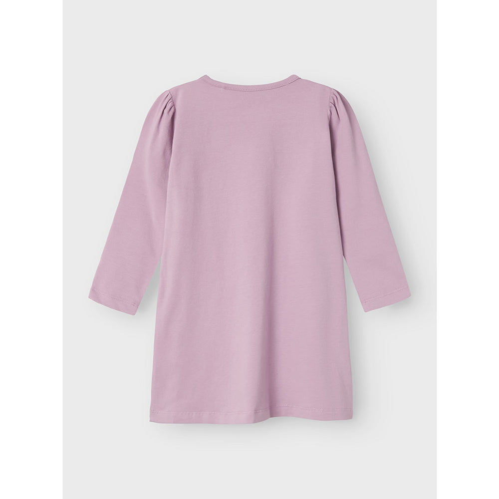 Delight your little one at bedtime with the adorable "Name It Lavender Mist Nenna Gabby's Dollhouse Nightgown." Crafted from soft, lightweight jersey, this night dress ensures a cozy and snug fit, perfect for a restful sleep. The fabric is not only stretchy but also gentle on the skin, allowing unhindered movement throughout the night.