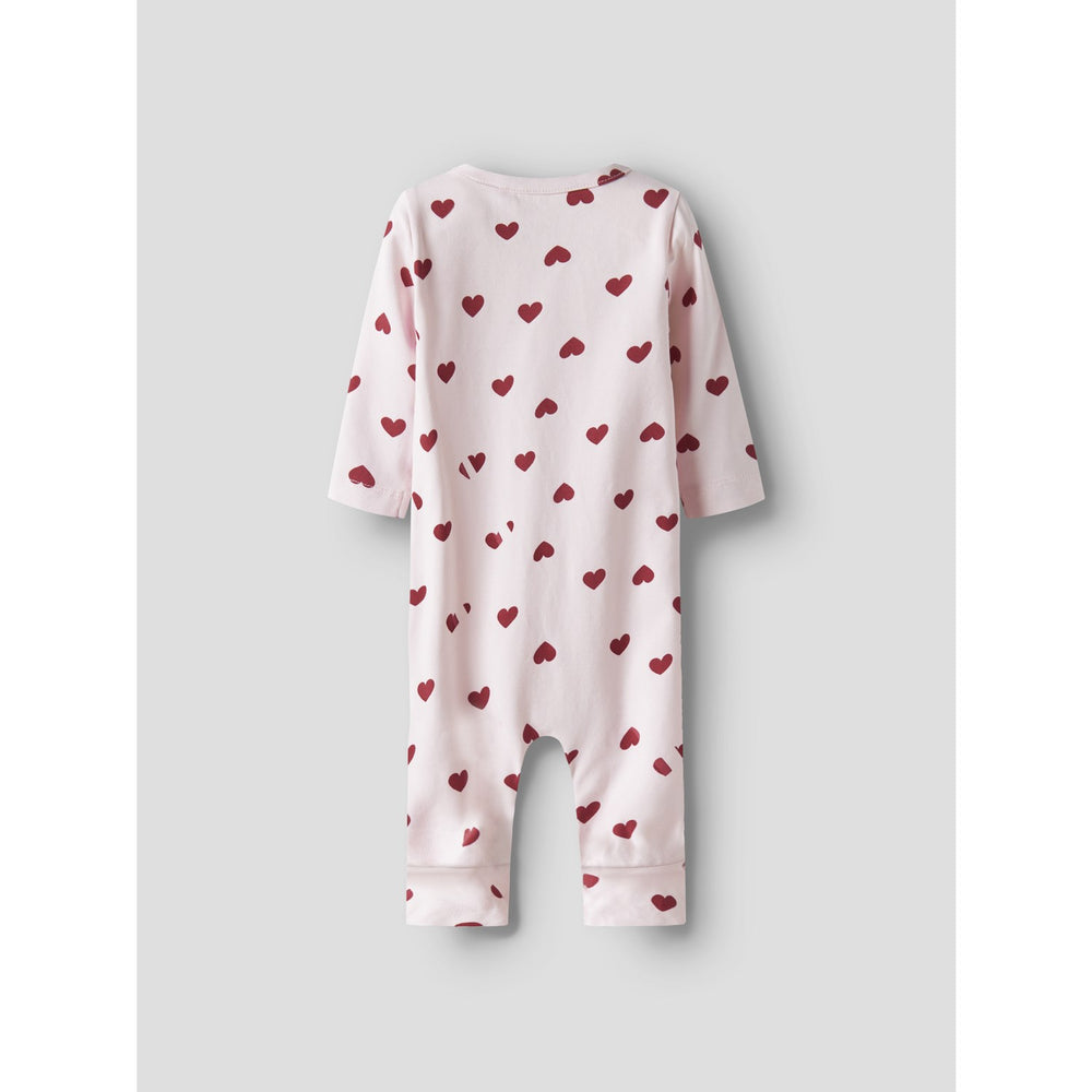Dress your little one in the Name It Mauve Morn Nbfragnhild Nightsuit Box for a peaceful night's rest. Crafted from soft, stretchy jersey, this sleepsuit ensures ultimate comfort with its gentle interior and flexible fit. Featuring long sleeves and easy press stud fastening for convenience, the delightful all-over print adds a touch of whimsy. Note: Keep this garment away from fire. Perfect for cozy sleep-time adventure. Closure: Press Stud Materials: 95% Cotton - Organic, 5% Elastane Materials and care: Wash with similar colors Washing instructions: Maximum Washing Temperature 40°C - Normal Process Extra: The main material in this product contains a minimum of 50% organic cotton. Organic cotton is grown without the use of harmful chemicals. Organic cotton farming protects natural resources and biodiversity.