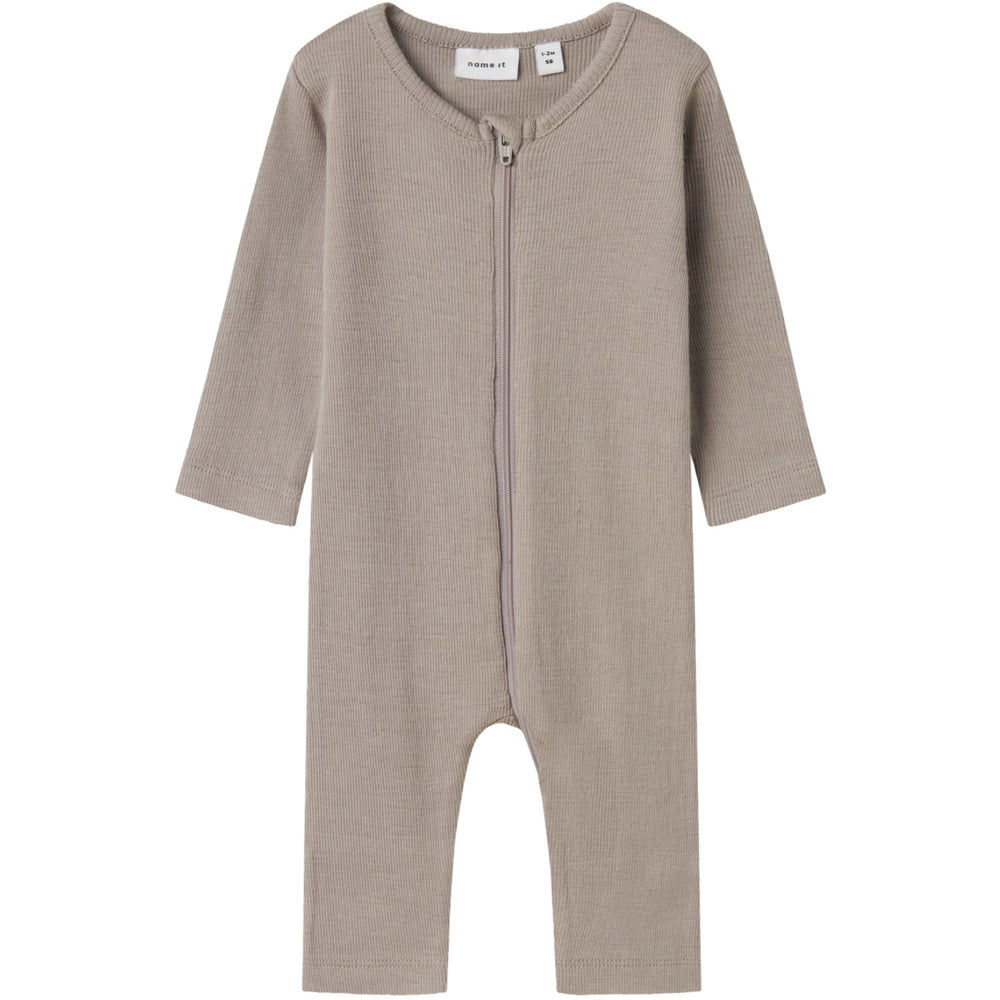 Introduce comfort to your little one's nighttime routine with the Name It Satellite Nbmwossa Wo/Si Rib Nightsuit. Crafted from soft, cosy wool, this sleepsuit features a rib knit design, boasting a classic striped pattern and excellent elasticity for ultimate comfort. This Nightsuit comes in soothing colors and includes long sleeves, a convenient zip fastening, and innovative hems that fold over the feet to keep them warm. Perfect for ensuring your child stays snug during all seasons, this garment combines functionality with a stylish touch, making bedtime a delightful experience. Easy to care for, it’s a practical addition to any child’s wardrobe. Closure: Zip fastening Materials: 85% Wool (Merino Wool), 15% Silk Materials and care: Max shrinkage 8% Washing instructions: Maximum Washing Temperature 30°C - Gentle Process