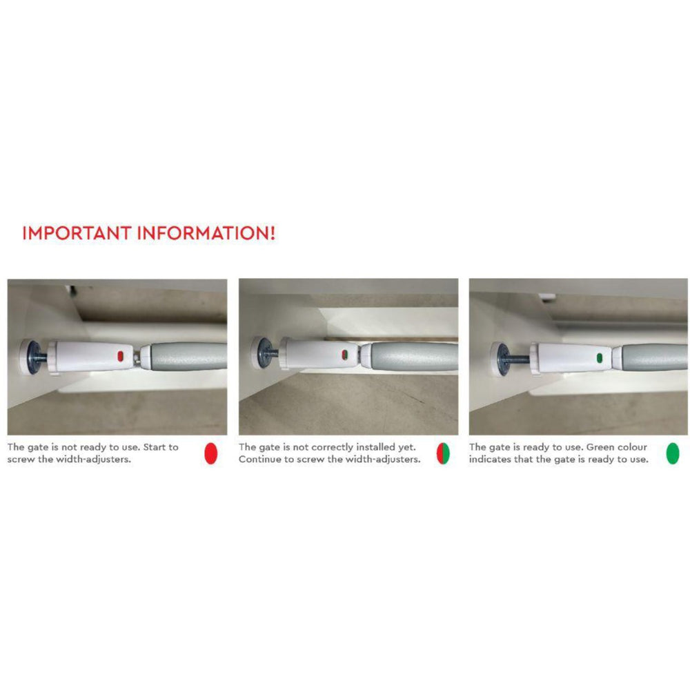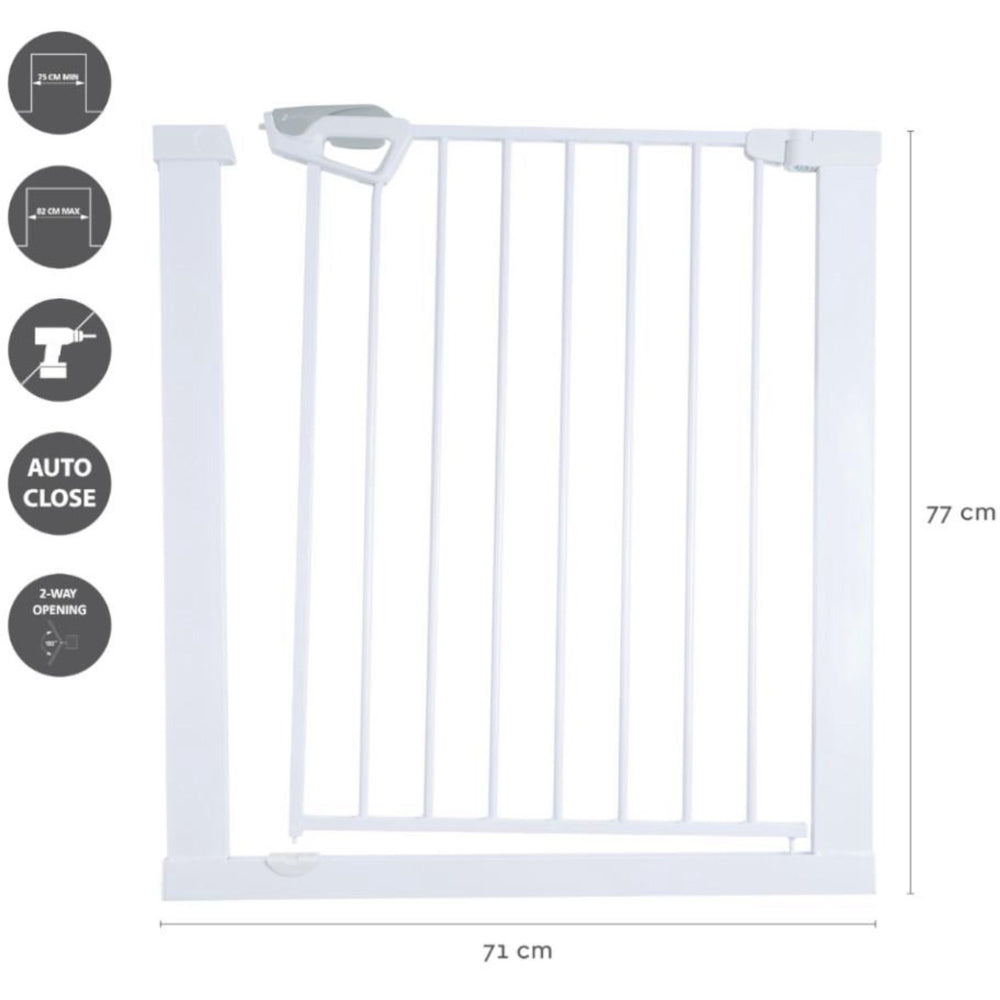 Ensure your child's safety with the Nordbaby White Safety Gate GIA, the perfect safeguard for any indoor area such as bedrooms, kitchens, and stairways. Designed to fit spaces between 75-82 cm, this gate can also adapt to wider areas with the addition of extension parts (available separately). Highlighting both safety and convenience, it opens in two directions and employs a secure closure mechanism to keep curious little ones safe.