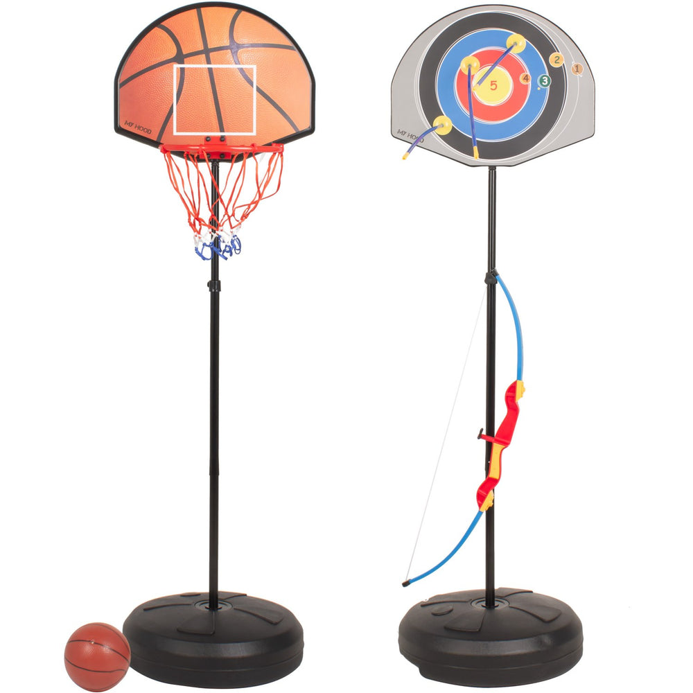 Discover the joy of outdoor play with the My Hood Basket With Archery set, a dual-purpose stand that effortlessly switches from a basketball hoop to an archery target. Perfectly suited for kids aged 6 and up, this set comes with a safety-first design featuring arrows with soft plastic suction cups. It includes a bow, three suction-cup arrows, a plastic basketball, and a pump, ensuring hours of fun and learning. Lightweight and easy to maintain, it promises endless engaging, educational playtime in any garden or yard.