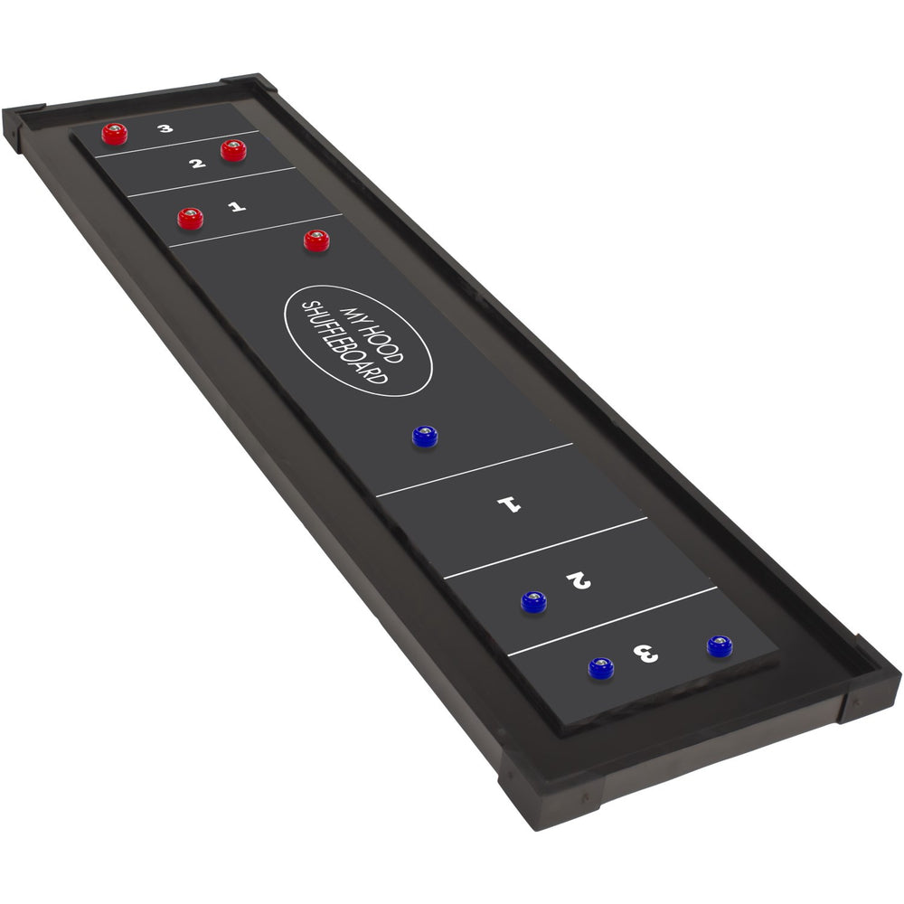 Introduce your family to the joys of My Hood Shuffleboard, a delightful garden game perfect for enhancing outdoor fun. Crafted with a reversible wooden board featuring both shuffleboard and curling, this game promises engaging, competitive play. Its lacquered surface ensures smooth puck gliding, coming with four red and four blue pucks to start the fun right away. Ideal for children and adults alike, it’s not only a blast to play but also folds up easily for convenient storage. Spark joy and learning in your backyard with this safe and easy-to-maintain game. Age: 3+ Extra: Size: 130 x 36 cm