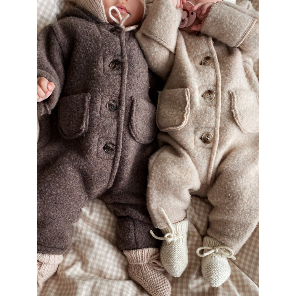 Discover the enchanting comfort of our Lalaby Chocolate Teddy Onesie, perfect for your little one. Crafted from soft, breathable materials, it features a delightful teddy bear design in a rich chocolate color, ensuring your child stays cozy and stylish. Ideal for cuddly moments, this onesie fits snugly, offering both warmth and ease of movement. It's easy to care for, making it a practical choice for everyday adventures or peaceful stroller outings. Watch your child enjoy the comfort and charm of this beautifully designed onesie. Materials: 100% merino wool