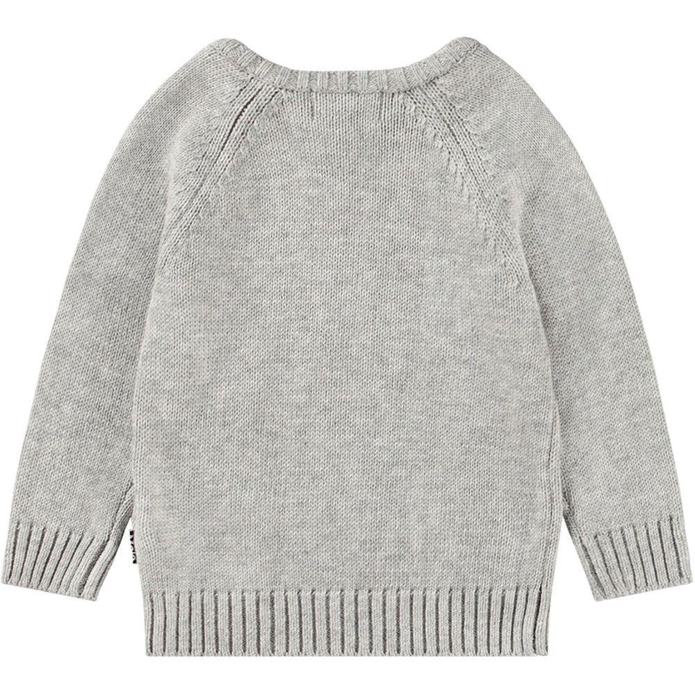 Discover the charm and warmth of the Molo Teddy Bear Knit Bless Crewneck, perfect for your little one. Crafted from soft, cozy knitted fabric, this delightful crewneck features a playful teddy bear design. It's styled in soothing colors with a snug fit, offering both comfort and style. Ideal for chillier days, this crewneck is easy to care for, making it a practical addition to any child's wardrobe. Elevate your child's everyday wear with this cute and comfortable piece.