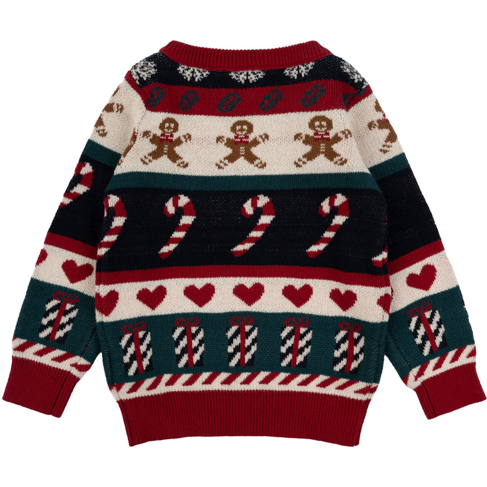 Introducing the perfect addition to your little one's winter wardrobe: THE NEW Siblings Multi-Colour Holiday Jacquard Pullover. Expertly knitted to keep your child warm and cozy, this eye-catching pullover features a vibrant, multi-coloured jacquard pattern that brings festive cheer to any occasion.