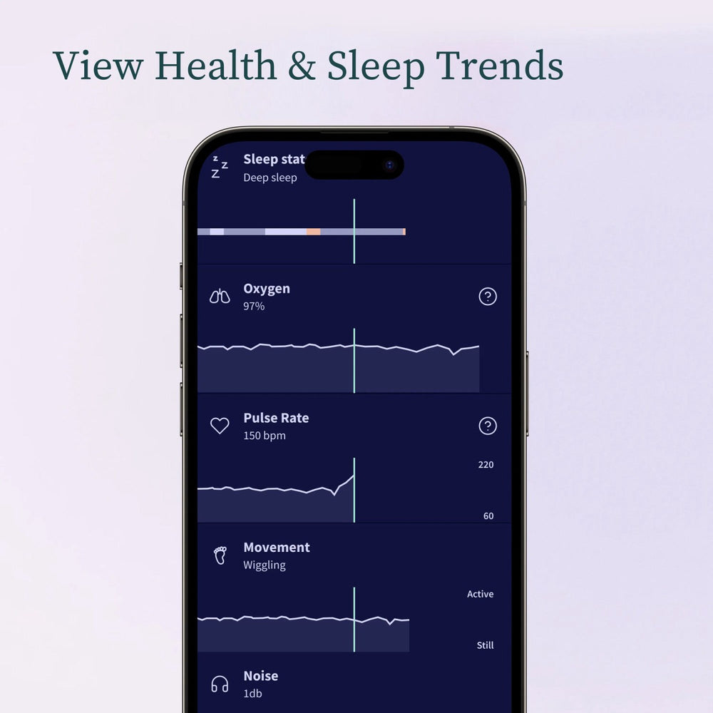 - Provides real-time monitoring of your baby's heart rate, oxygen, sleep patterns, and more