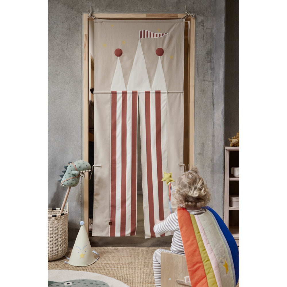 Welcome to an enchanting world where your little one's imagination will soar with the OYOY Clay/Red Castle Door! Designed to easily transform any standard doorway into an adventurous castle entrance, this play tent offers an instant magical play space. Simply hang it by the durable loops or use a telescopic rod for a quick and effortless setup.
