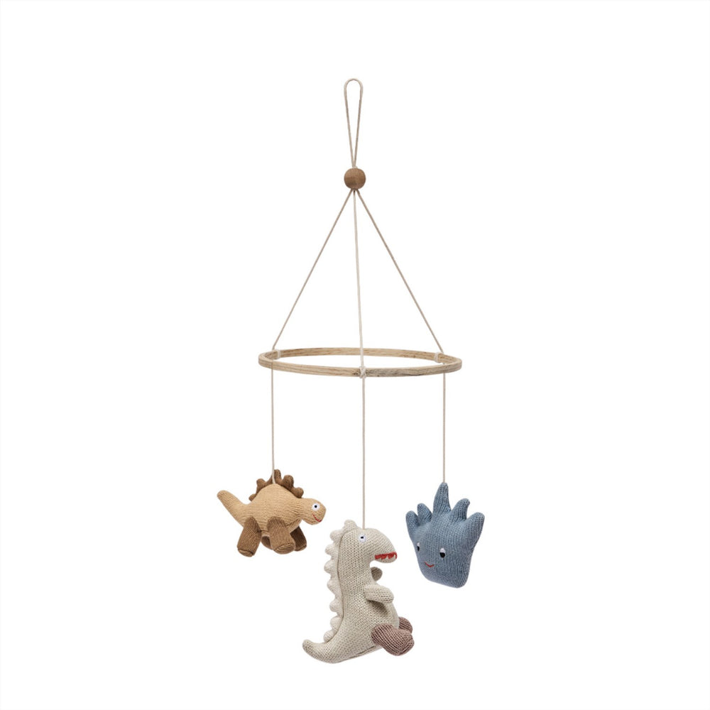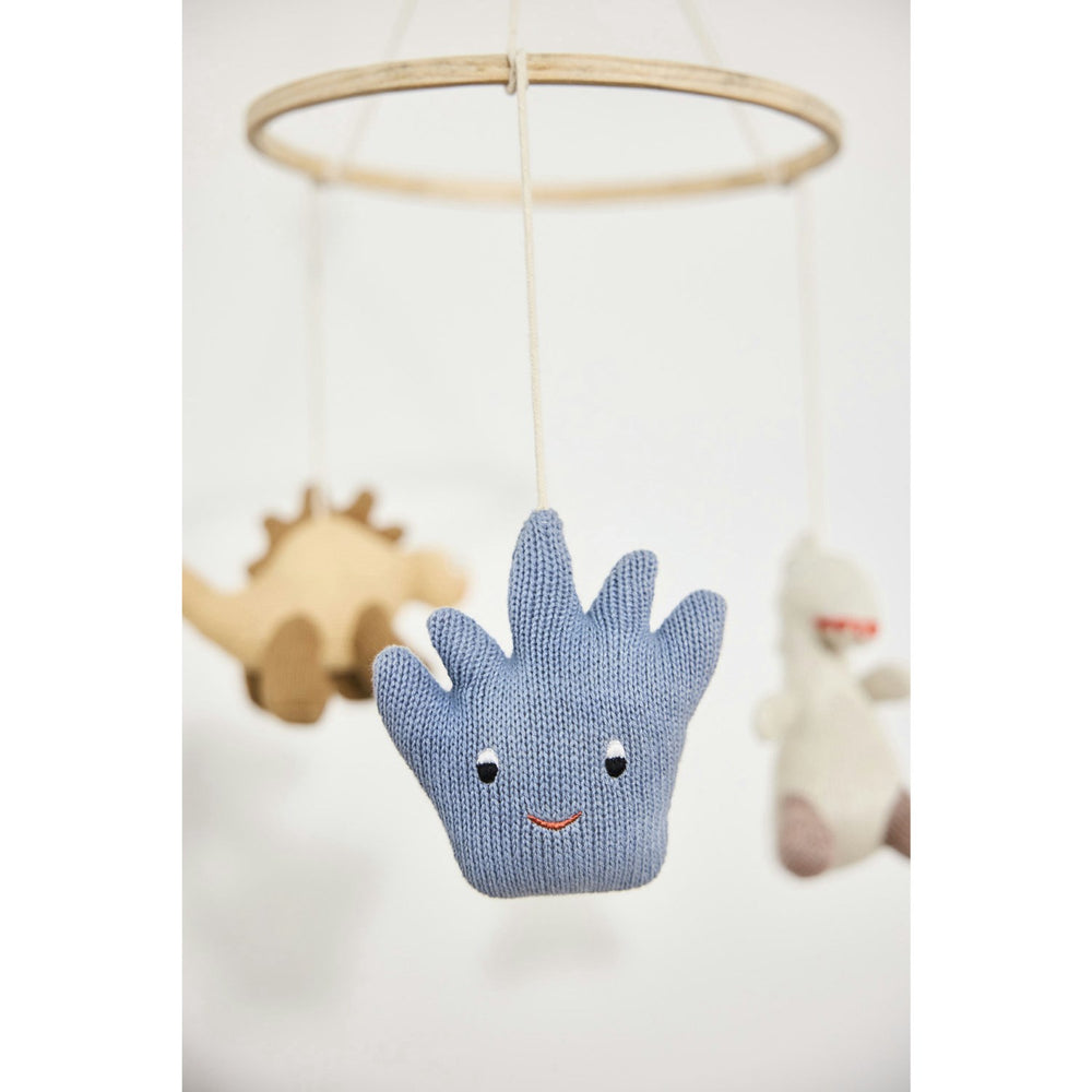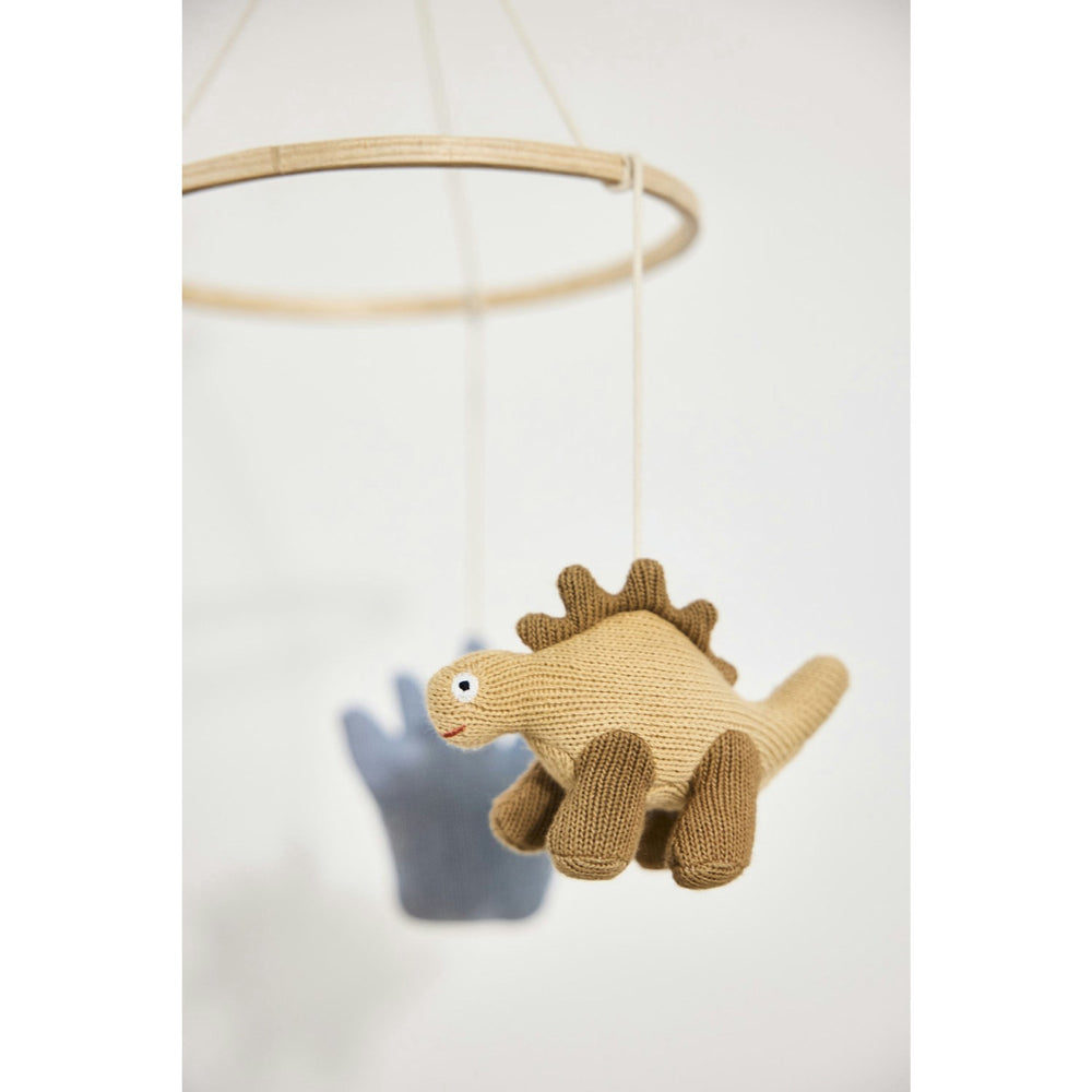 Delight your child's nursery with the OYOY Dino Mobile, where knitted dinosaurs Theo and Billy dance above from a sturdy wooden ring. Crafted from gentle cotton, this enchanting mobile not only decorates the room but also stimulates your child's visual tracking and cognitive development. Ideal for fostering early curiosity and focus, it's easy to install and perfect for compact storage. Elevate your child’s room with both charm and educational value.