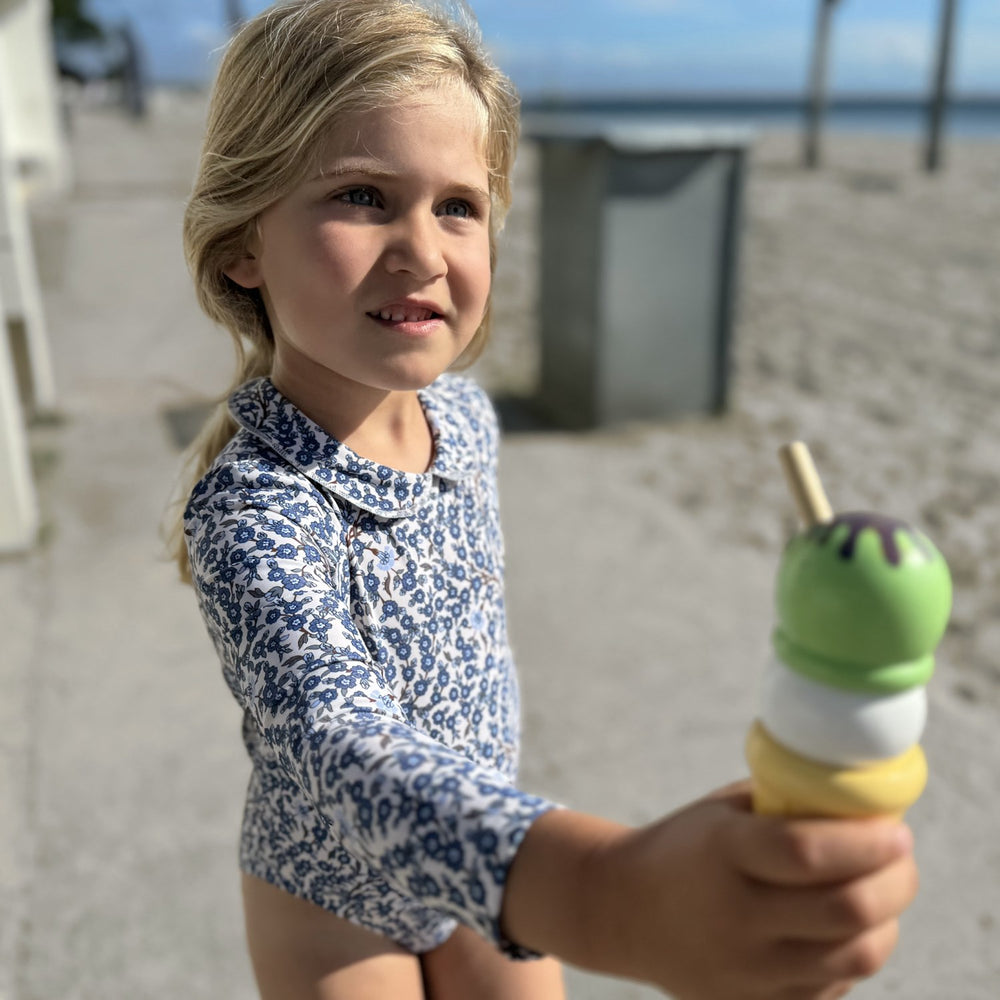 Petit Crabe Empress B Peeter Pan Collar Swimsuit L/S - Made With Liberty© Fabric