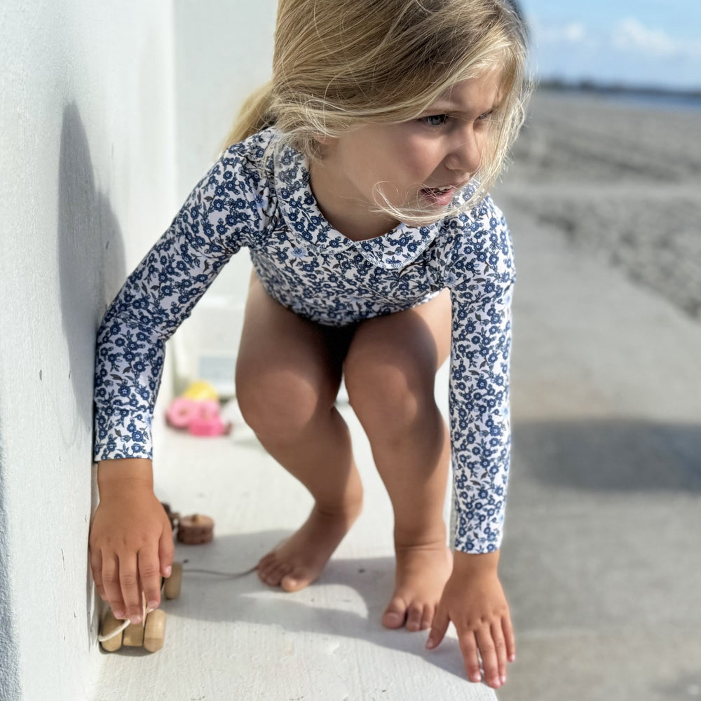 Dress your little one in the enchanting Petit Crabe Empress B Peeter Pan Collar Swimsuit L/S. Crafted from luxurious Liberty© fabric, this swimsuit features a charming Peeter Pan collar and practical long sleeves. Its fabric boasts UPF+50 protection and is Oeko-Tex certified, ensuring safety and comfort. The design includes a convenient back zip, making it easy to wear. Perfect for both style and functional swimwear, watch your child enjoy the water in complete comfort and elegance.