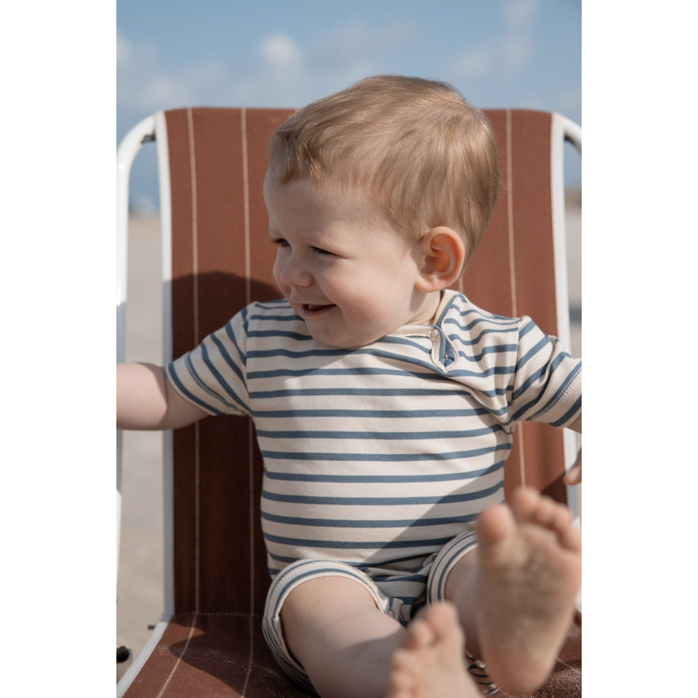 Dress your little one in the delightful Petit Piao Blue Mirage Summer Romper, perfect for warm weather fun. This charming jumpsuit features short sleeves and legs for ultimate comfort, designed with adorable summery prints. It's crafted from soft, breathable fabric, ensuring your child stays cool and comfy all day. The practical button closures between the legs make changing easy and swift. Ideal for playful days out or cozy times at home, this romper merges effortless style with functionality, making it a must-have in your child's summer wardrobe.