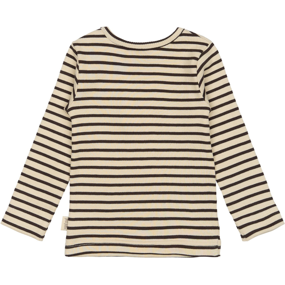 Petit Piao Coffee Bean/off White T-shirt L/S Modal Striped