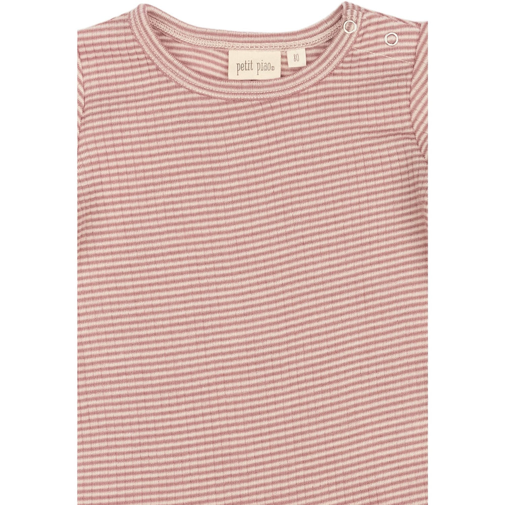 Petit Piao Nostalgic Rose/Dark Off White PPDante T-Shirt L/S Meriono Wool Striped