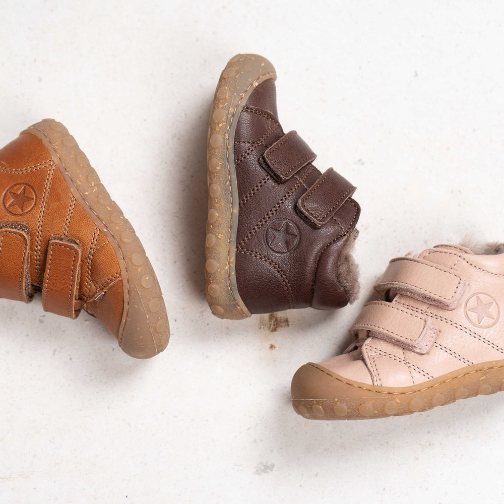 Discover the comfort and style of Bisgaard's Dark Brown Barefoot Hale V Lamb Prewalkers, perfect for your little one's early steps. Crafted from 100% LWG-certified leather, these shoes not only support eco-friendly practices but also ensure your child's feet are surrounded by soft, breathable lambskin lining. The flexible, light, and non-slip rubber sole provides secure footing, while the firm heel cap and protective rubber toe cap offer additional support and durability. The adjustable Velcro closure ensures a snug fit, making these shoes easy to put on and take off. Suitable for all foot types and sizes, they feature a removable insole designed for supreme comfort and optimal ergonomic support. Experience the blend of style and practicality that encourages a natural walking pattern and enhances balance. Choose Bisgaard for a reliable and stylish choice in your child's foundational years.
