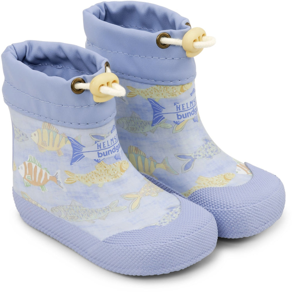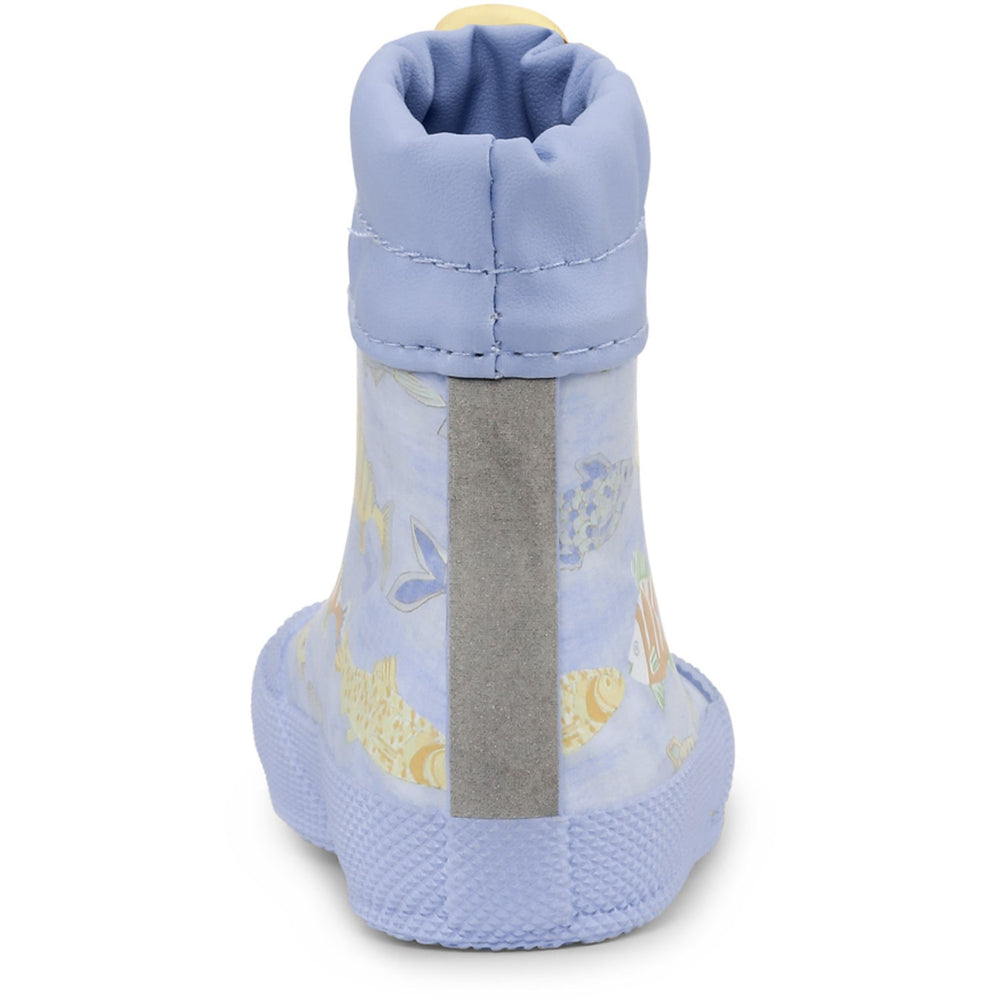 Introducing the Bundgaard X Helmstedt Fish Pond Ocean Cover Rain Boots, expertly crafted to support your child's first steps into the world. Constructed from premium natural rubber, these boots are as gentle on the environment as they are on your little one’s feet, being completely free from PVC, PFAS, and other harmful chemicals. Featuring a playful design inspired by a serene fish pond, the eye-catching pattern and vibrant colors stimulate visual engagement. The wide fit and flexible rubber sole provide essential comfort, enhanced by the barefoot design which promotes a natural foot position without any heel drop. Safety is paramount with a reflective detail for visibility in low light conditions, while the adjustable closure ensures a snug fit, keeping little feet dry and cozy. The soft cotton lining and removable insole make these boots a pleasure to wear, and easy to care for. Perfect for budding explorers learning to walk or stand, the Fish Pond Ocean Cover Rain Boots combine functionality with whimsy, making them an ideal choice for your child’s outdoor adventures.