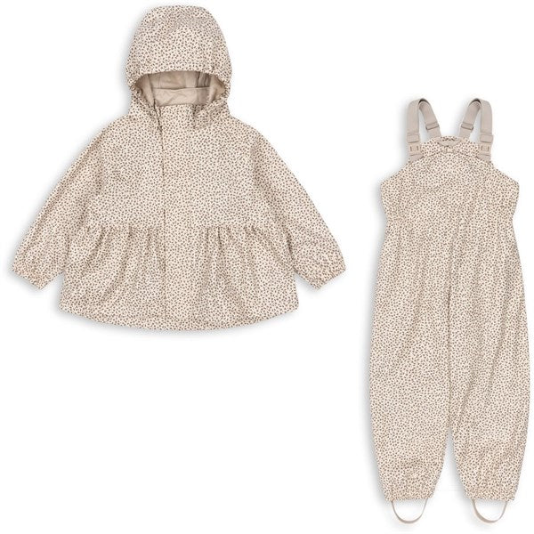 Introducing the Konges Sløjd Rain Set in the charming Palme Milk Tank pattern, perfect for your little adventurer! Crafted from durable, waterproof materials, this set features a playful palm design on a soothing milk tank background, ensuring your child not only stays dry but stylish too. Ideal for sizes ranging from toddlers to preschoolers, the comfortable fit and adjustable design promote ease of movement. Machine washable for easy care, this set is a must-have for puddle-splashing fun!