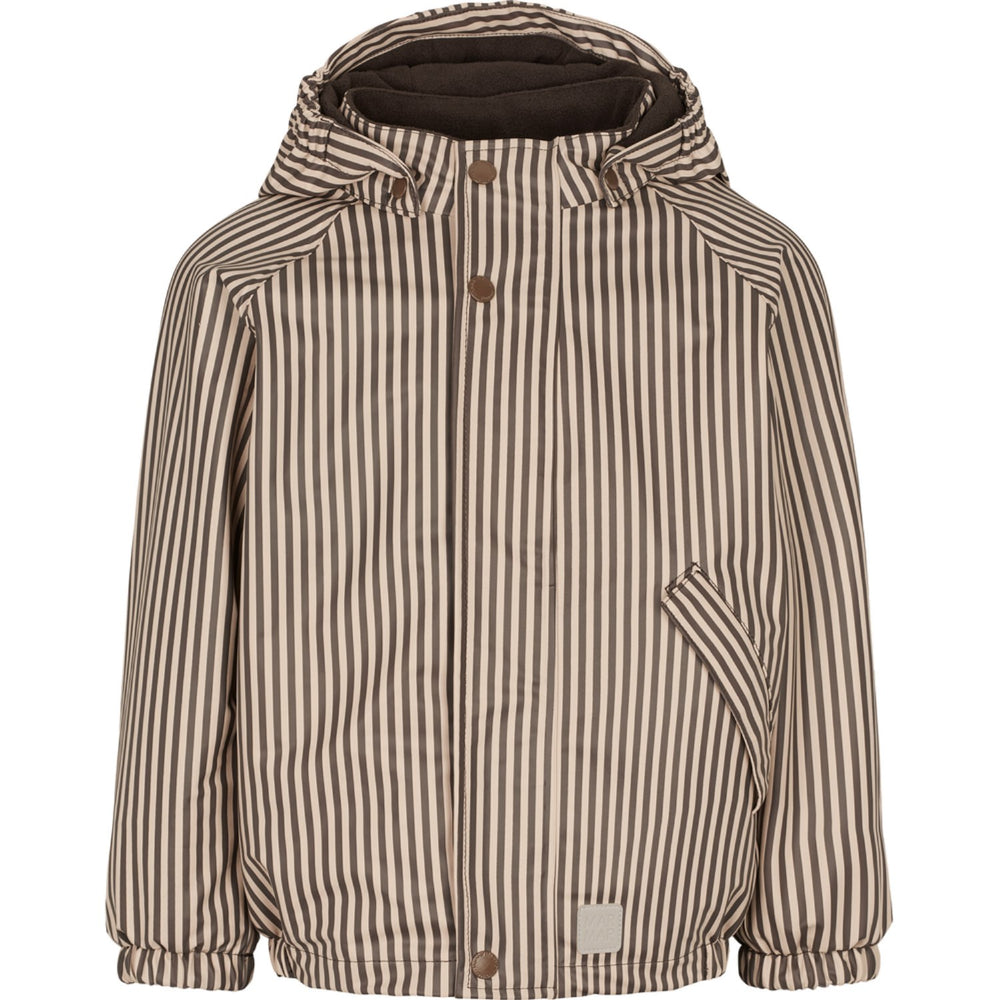 Explore the great outdoors in cozy style with the MarMar Rainwear Fleece Brown Stripe Obo Set. Crafted with a warm fleece lining, this set includes both a jacket and pants adorned with cheerful brown stripes. The jacket features a handy pocket flap and both pieces close securely with a zipper and snap buttons. Elastic waistbands ensure a snug, comfortable fit. Perfect for playful puddle jumping or brisk morning walks, this durable set keeps little ones warm and dry with a dash of fun. Embrace easy care as both pieces are simple to wash and quick to dry. Materials: 100% Polyester (Recycled) Washing instructions: Wash - Machine wash 30°C gentle, Bleach - Do not bleach , Drying - Do not tumble dry, Ironing - Do not Iron, Dry Clean - Do not dry clean Certifications: OEKOTEX standard 100, GRS, BSCI Rainwear set with fleece lining Wind and waterproof (water column pressure of 8000mm) Welded seams Lined with warm soft polyester fleece Detachable hood One large pocket Matching details YKK certified zippers Adjustable elastic at the waist Adjustable bootstraps under the feet Name label on the inside Oeko-tex® - Tested for harmful chemicals