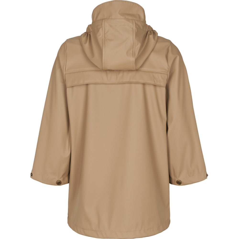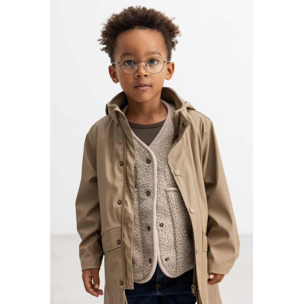 Brighten up rainy days with the MarMar Rainwear Sepia Brown October Jacket, designed with kids in mind. This chic long jacket features a practical zipper and snap buttons for easy closure, adjustable sleeve cuffs for a perfect fit, and a detachable shade hood. Complemented by two large front pockets for essentials, its durable material ensures kids stay dry and comfortable. Perfect for spirited outdoor adventures! Materials: 100% Polyester (Recycled) PU coating Washing instructions: Wash - Machine wash 30°C gentle, Bleach - Do not bleach , Drying - Do not tumble dry, Ironing - Do not Iron, Dry Clean - Do not dry clean Certifications: OEKOTEX standard 100, GRS, BSCI Rainwear Wind and waterproof (water column pressure of 8000mm) Welded seams Rib inside the collars, which feel soft on the neck Two large pockets Adjustable cuffs with snap button Detachable hood Matching details YKK certified zippers Name label on the inside Oeko-tex® - Tested for harmful chemicals