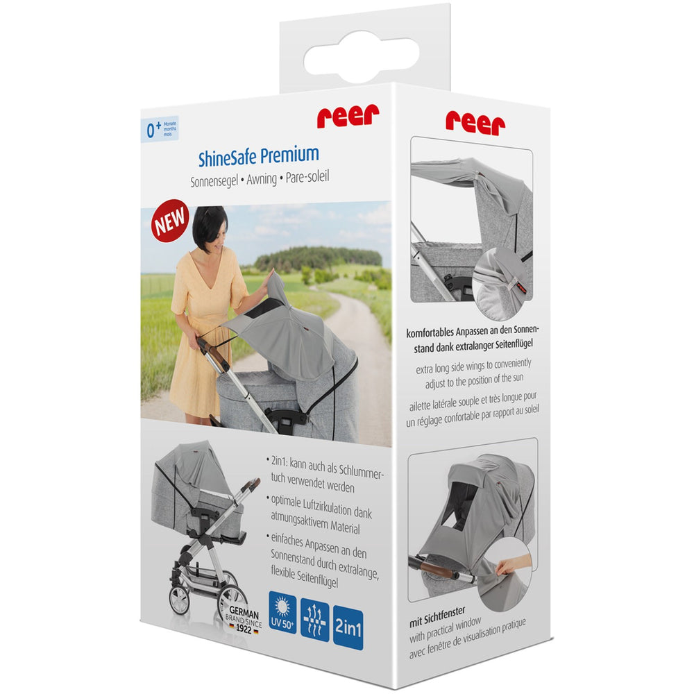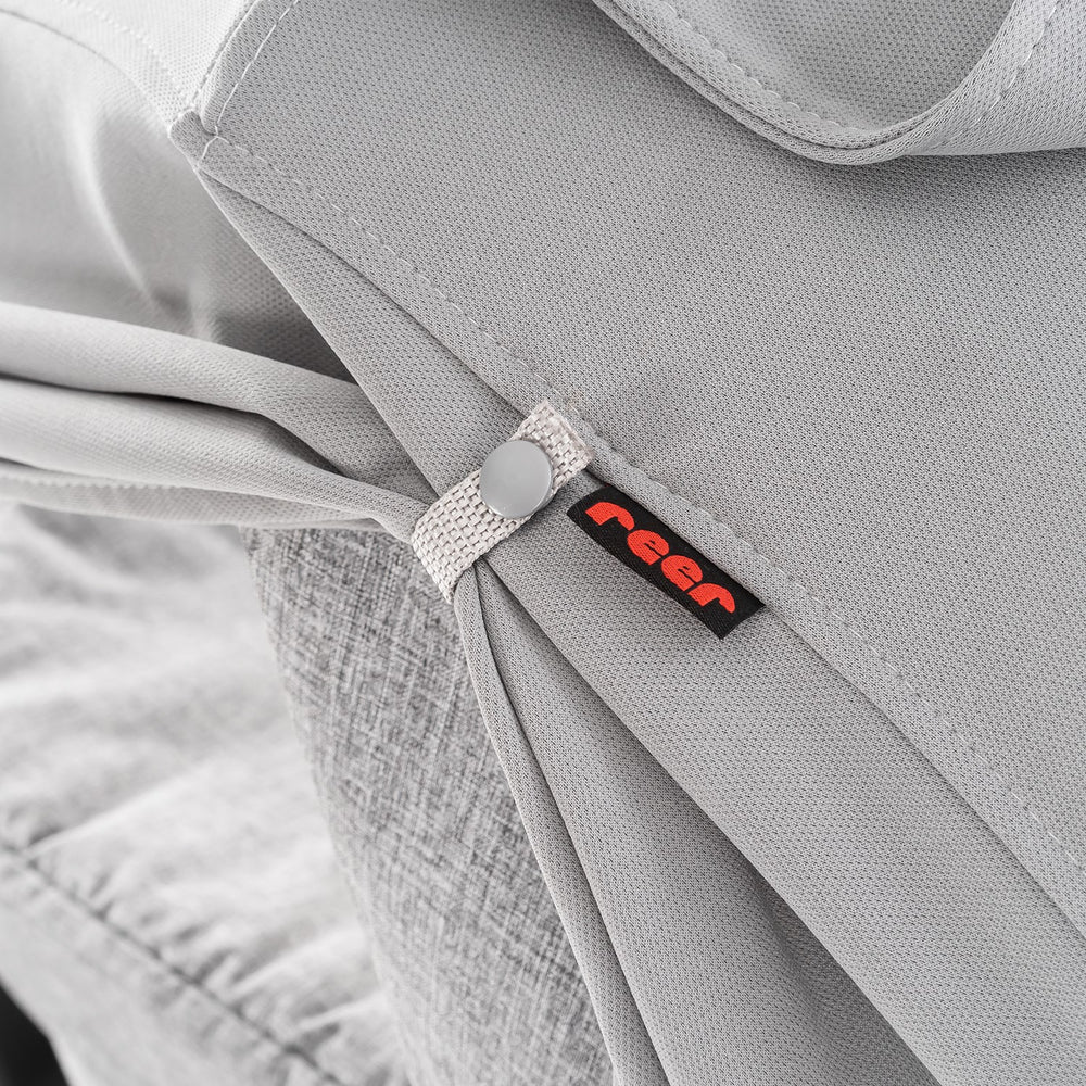 Protect your little ones from the harsh sun with the REER Grå ShineSafe Sun Canopy for prams. Engineered for optimal safety and comfort, this canopy boasts extra-long, flexible side wings, ensuring easy adjustment according to the sun’s position. It's perfect for creating a cozy sleep shade, promoting better naps outdoors. Crafted from breathable materials, it offers excellent air circulation, keeping your baby cool and comfortable during sunny outings. Universally designed, it fits all common pram systems and includes a handy storage bag for convenience. Suitable from birth, this sun canopy ensures your outings are both safe and enjoyable for your baby.
