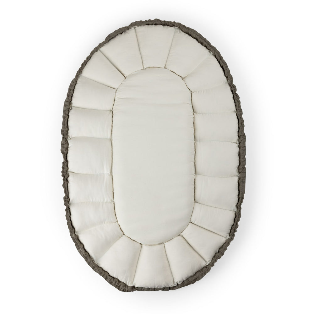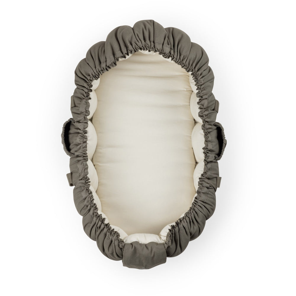 This unique baby nest boasts a kapok filling— a natural fiber which is antibacterial and impossible for dust mites to inhabit, perfect for sensitive little ones. Plus, the kapok material is heat-regulating, maintaining a comfortable temperature for your baby. Designed with practicality in mind, it features securely closing handles for safe carrying and integrated pockets for essentials like pacifiers.
