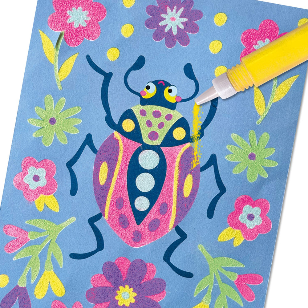 - Contents: 4 x sand art maps, 5 x tubes of colored sand (yellow, light blue, light green, pink, purple), instructions